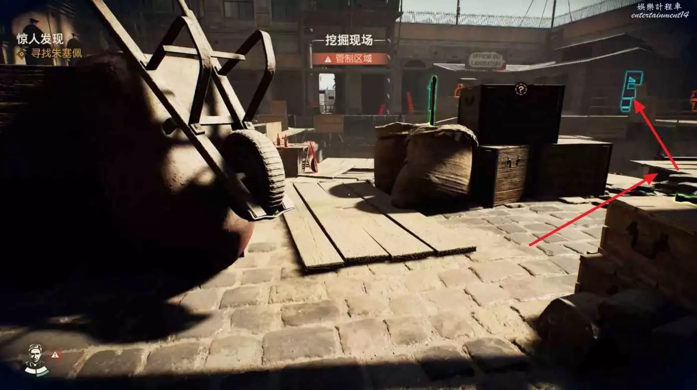 在建築右側角落的桌子上可以拿到【挖掘現場安排】,隨後進入劇情,文圖拉神父會過來巡視一圈。
