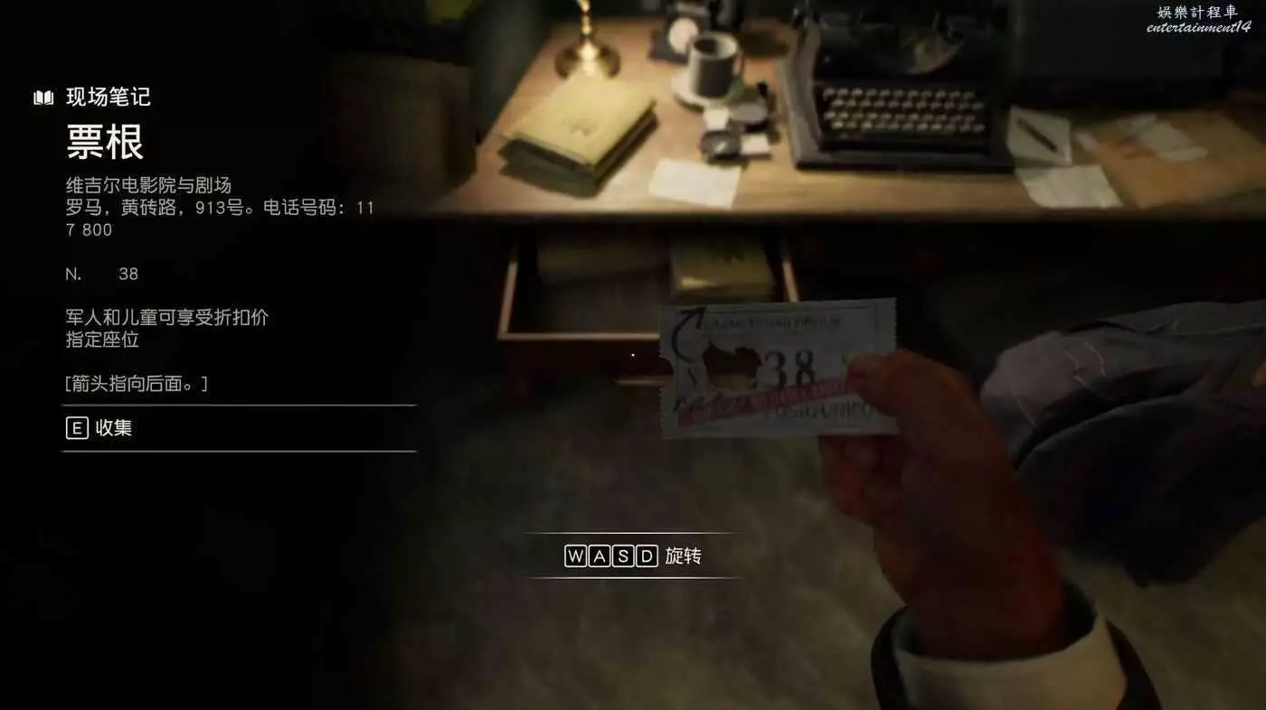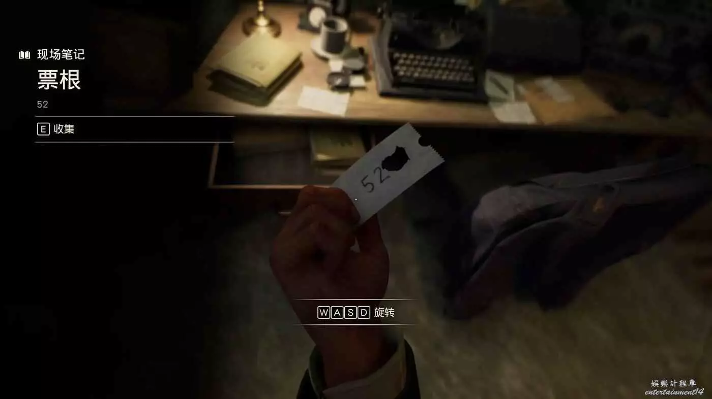 先找到抽屜裡的票根,可以看出來密碼,正面是38,然後用鍵盤翻頁就能看到背後的數字了,是52。