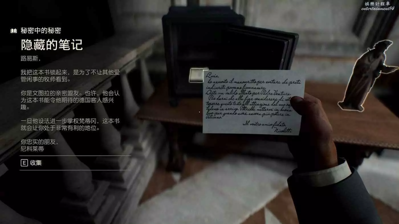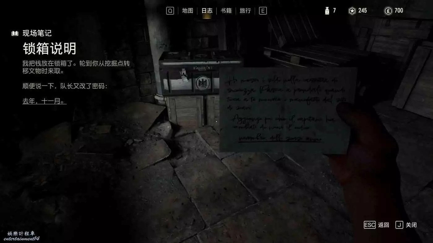 在做驚人發現的支線時,地窖裡的一個箱子需要密碼,我們可以看這個提示。
