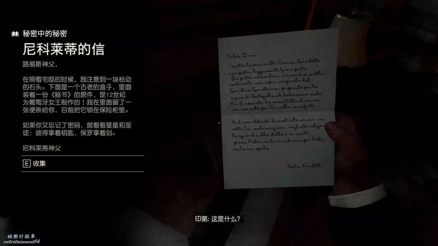 前面兩位元數字確定後是44,後面兩位就是7和1,所以密碼是4471或者4417,都試一下就可以得到最終密碼是4471。箱子裡獲得偽造書籍。