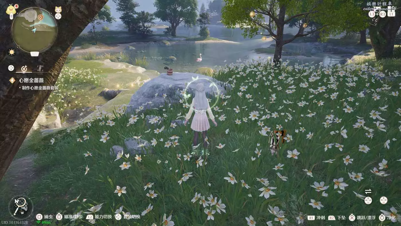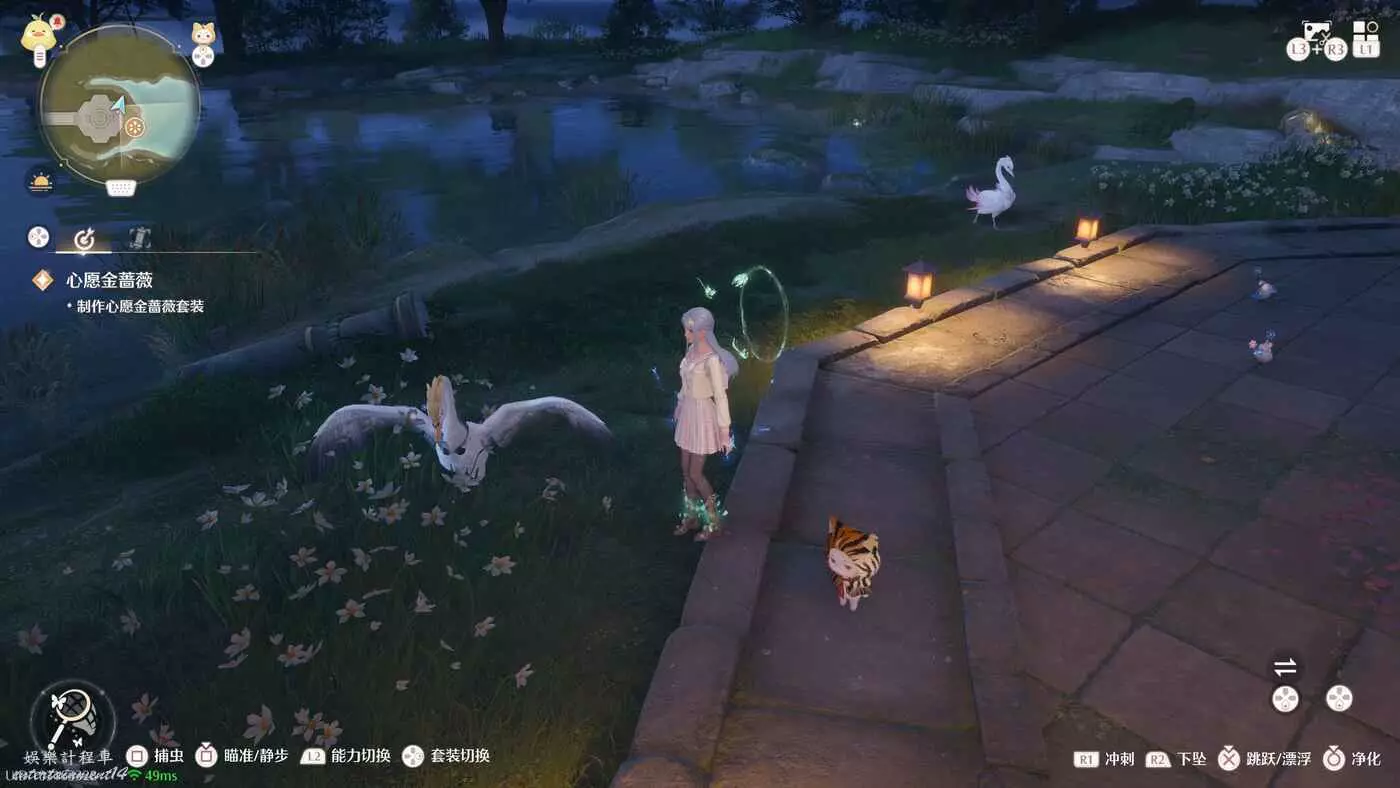 然後花願鎮下方區域微風綠野有枚色天鵝絨和夜色天鵝絨,需要耐心等他們上岸才能採集