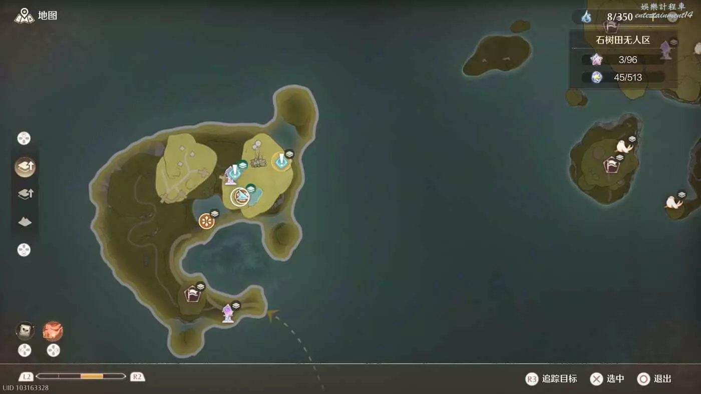 依舊在石樹田無人區,傳送高平台,沒開傳送點的可以跑過去啟動,需要推主線解鎖套裝能力,不然你飛不過去。