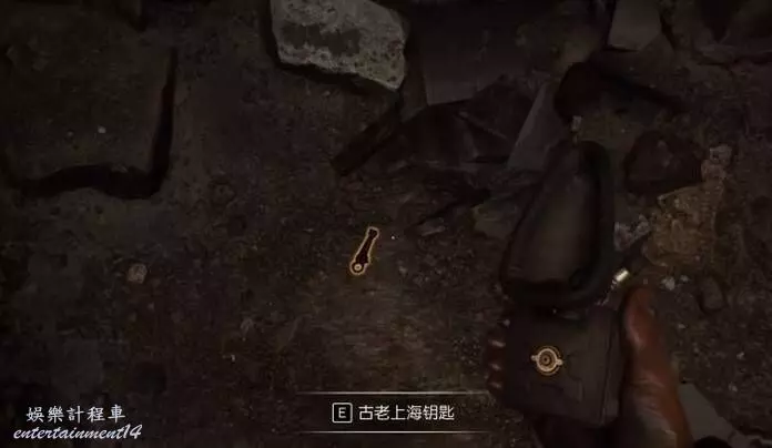 與木板互動,將其移開,然後遊過去,你會在另一側找到古老上海鑰匙。