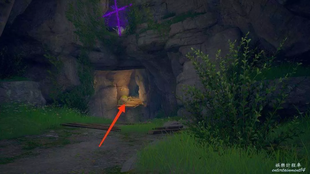 到達圖中位置時,進入所指洞口,裡面有魔氣怪和一顆奇想星。