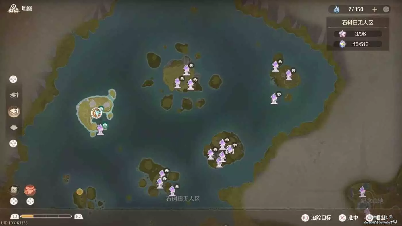 依舊在石樹田無人區,傳送高平臺,沒開傳送點的可以跑過去啟動,需要推主線解鎖套裝能力,不然你飛不過去。