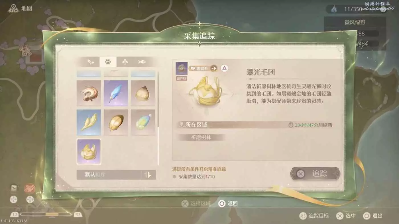 首先初始城鎮花願鎮就有一個稀有素材——圍兜毛球