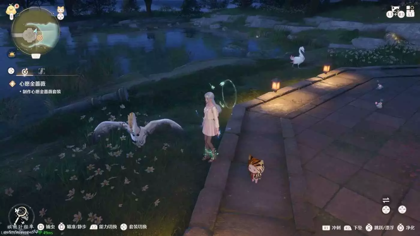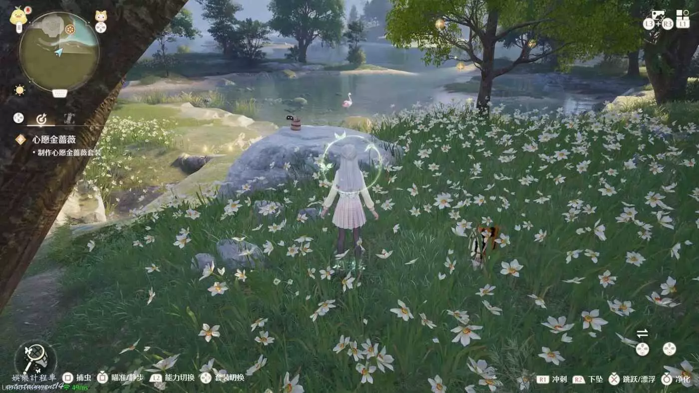 然後花願鎮下方區域微風綠野有枚色天鵝絨和夜色天鵝絨,需要耐心等他們上岸才能採集