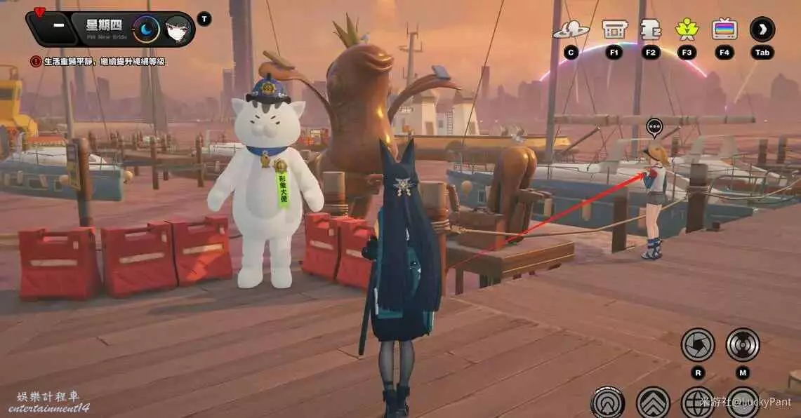 然後前往箭頭指向處與貓對話即可獲得硬幣
