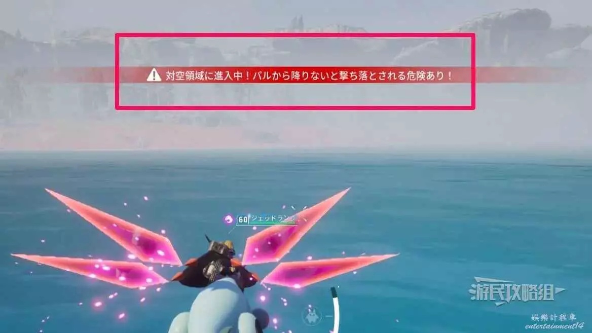 注意天墜之地的許多位置都有對空攻擊,如果乘坐飛行帕魯靠太近的話就會被攻擊,建議先使用飛行帕魯到附近,等出現對空警報後在換成水上帕魯繼續往前走。