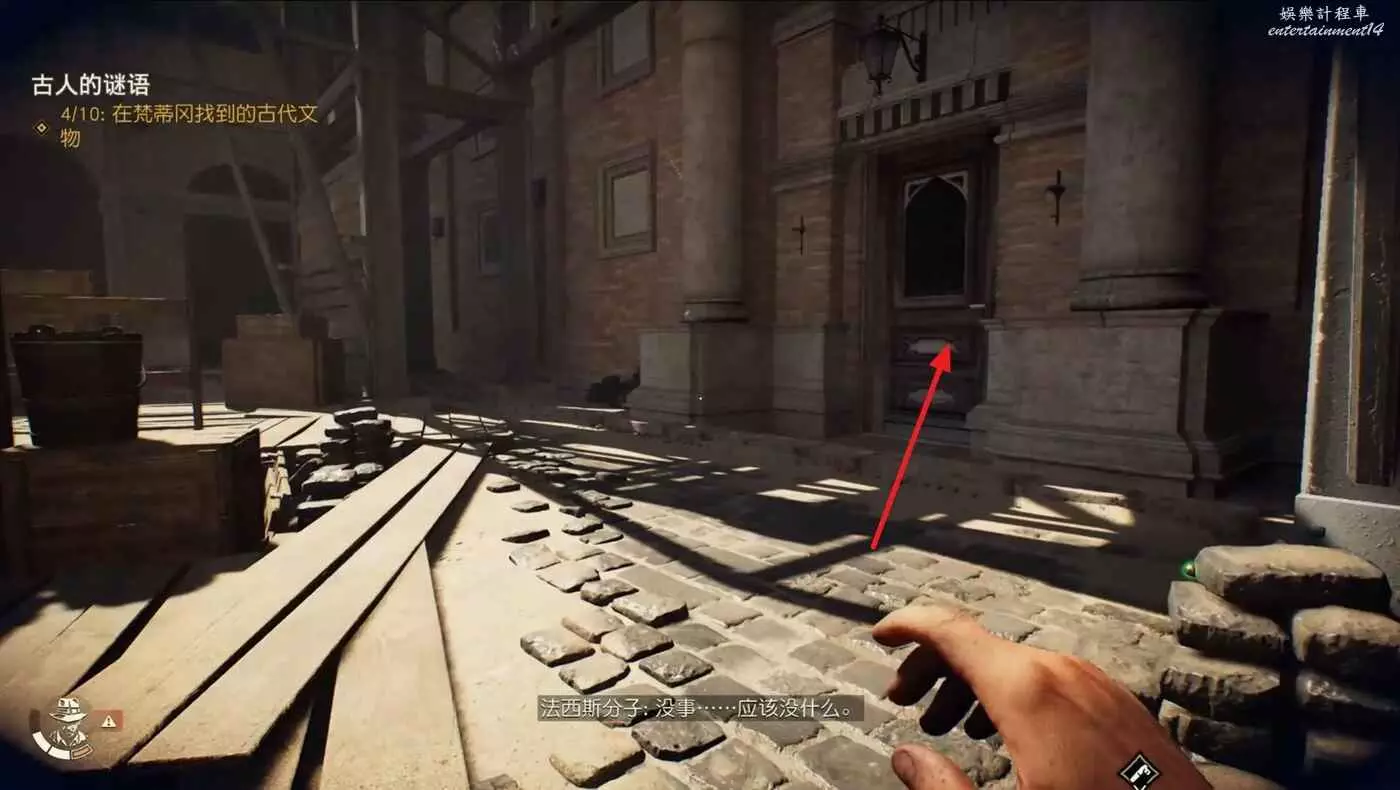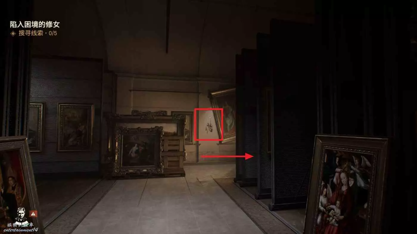 使用錘子等武器打碎左邊的牆,裡面可以拿到失落的歐洲文物【維納斯雕像】