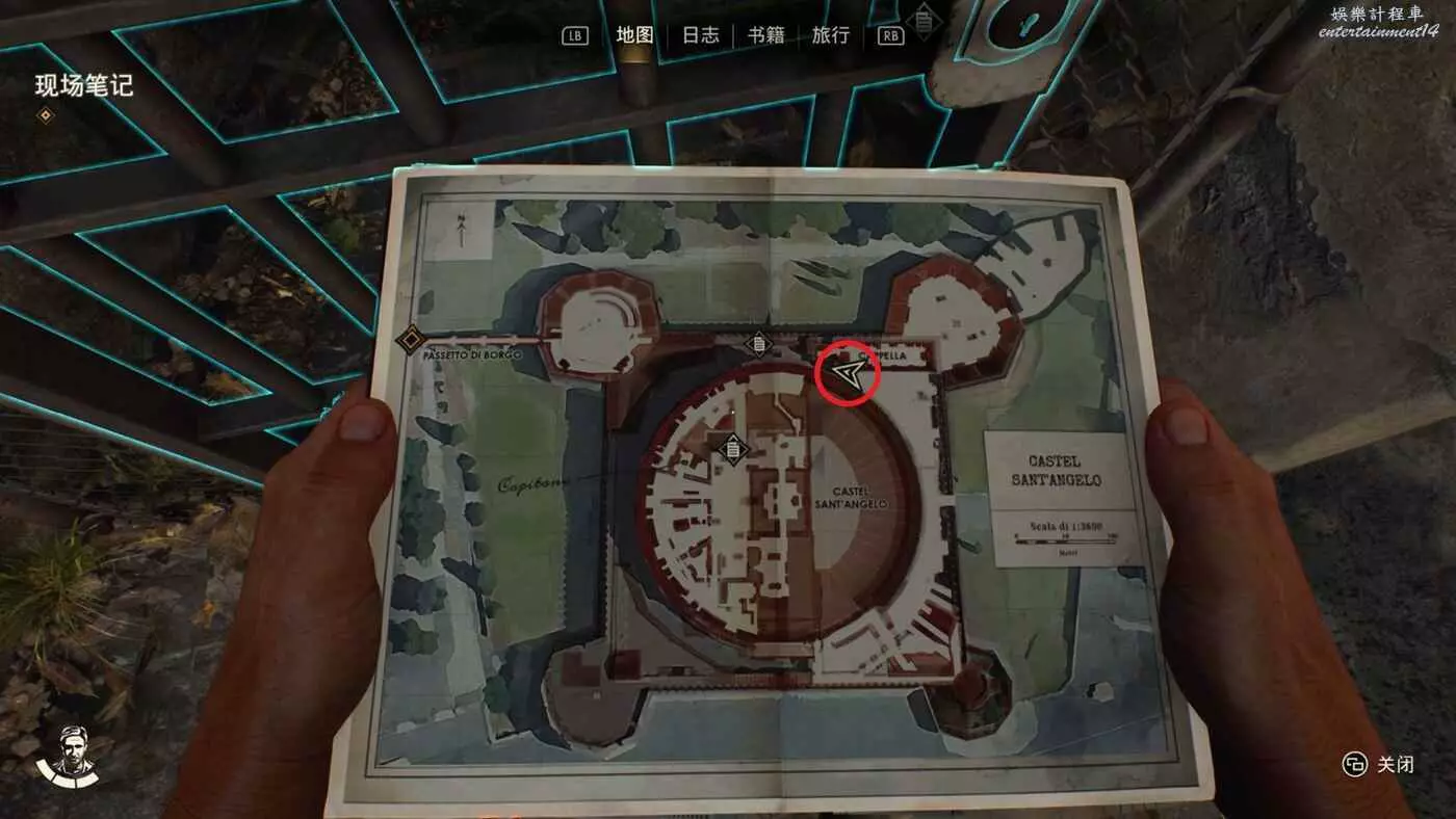 將審問的敵人幹掉,劇情中能獲得一把鑰匙,從吉娜的對話中得知還有一份筆記提示目前位於西斯廷禮拜堂處。