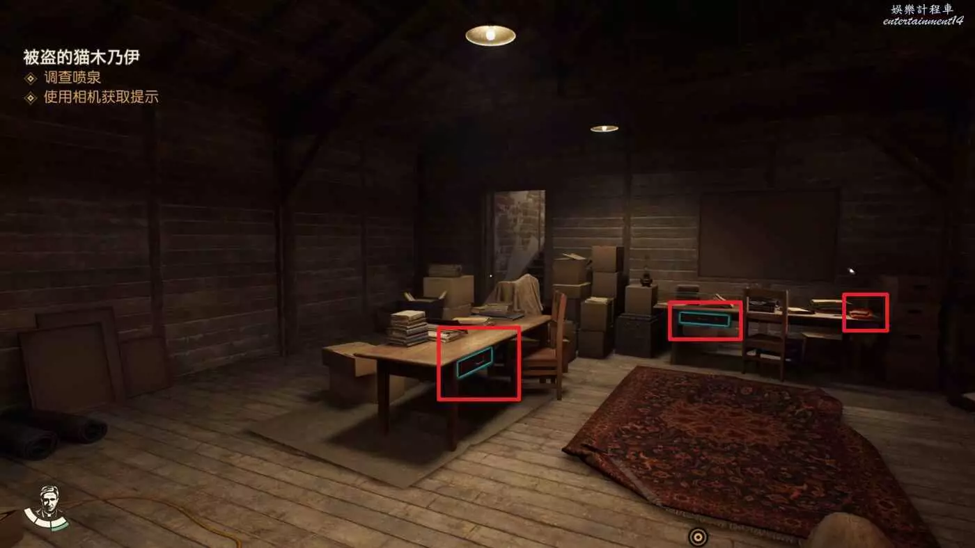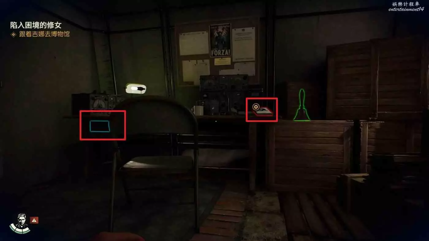 裡面的桌子上可以拿到筆記【日曆頁】、【秘密交貨信件】、【密碼對照表】,然後通過密碼【6380】打開旁邊的箱子獲得筆記【橋瓦尼的信件】與【梵蒂岡藥瓶】並完成謎團【紀念日期】。