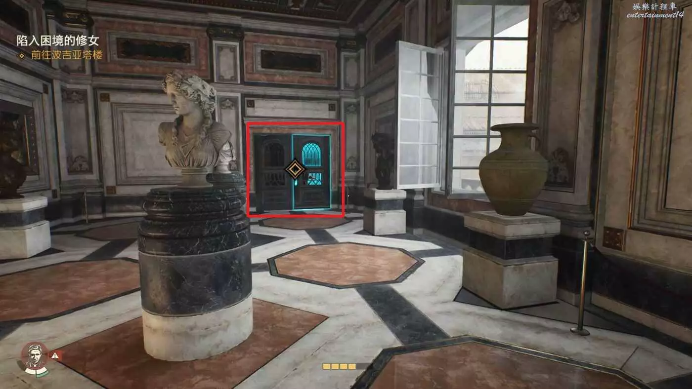 傳送到【使徒宮】上層解開【上帝的居所】謎題的位置,吉娜會在前方的雙開門處等我們。