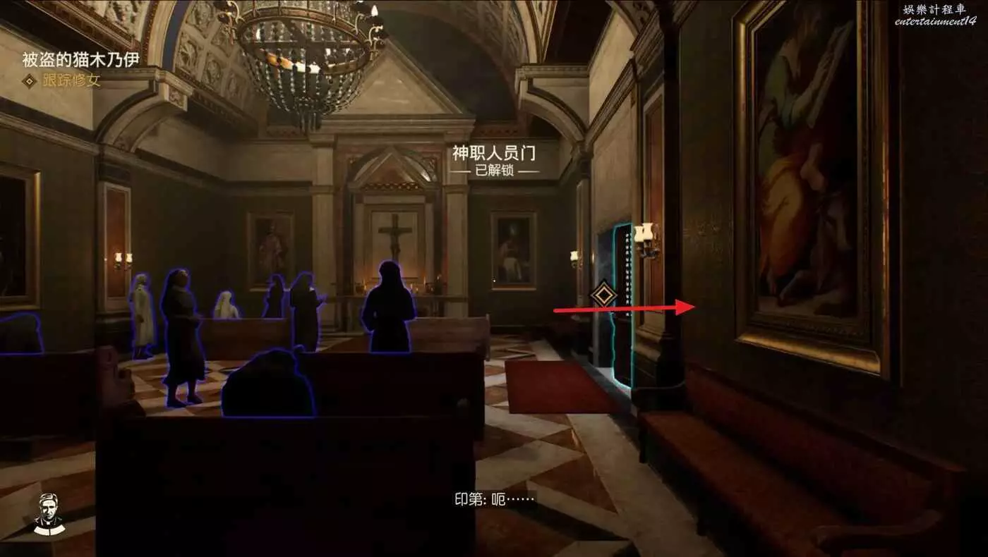 來到西斯廷禮拜堂找吉娜,跟瘋牧師的那個老修女在一個位置,過去與其對話開啟任務。