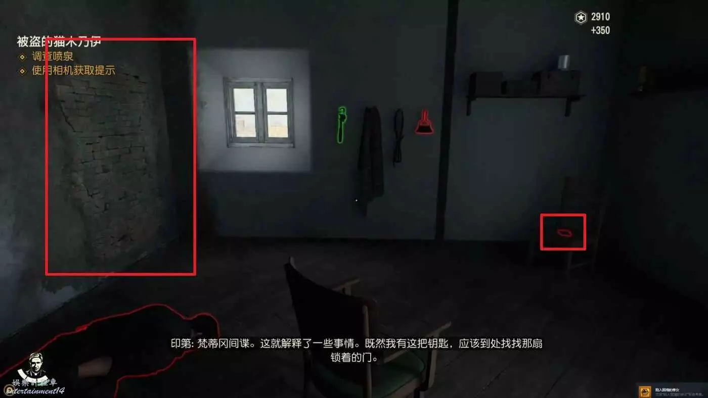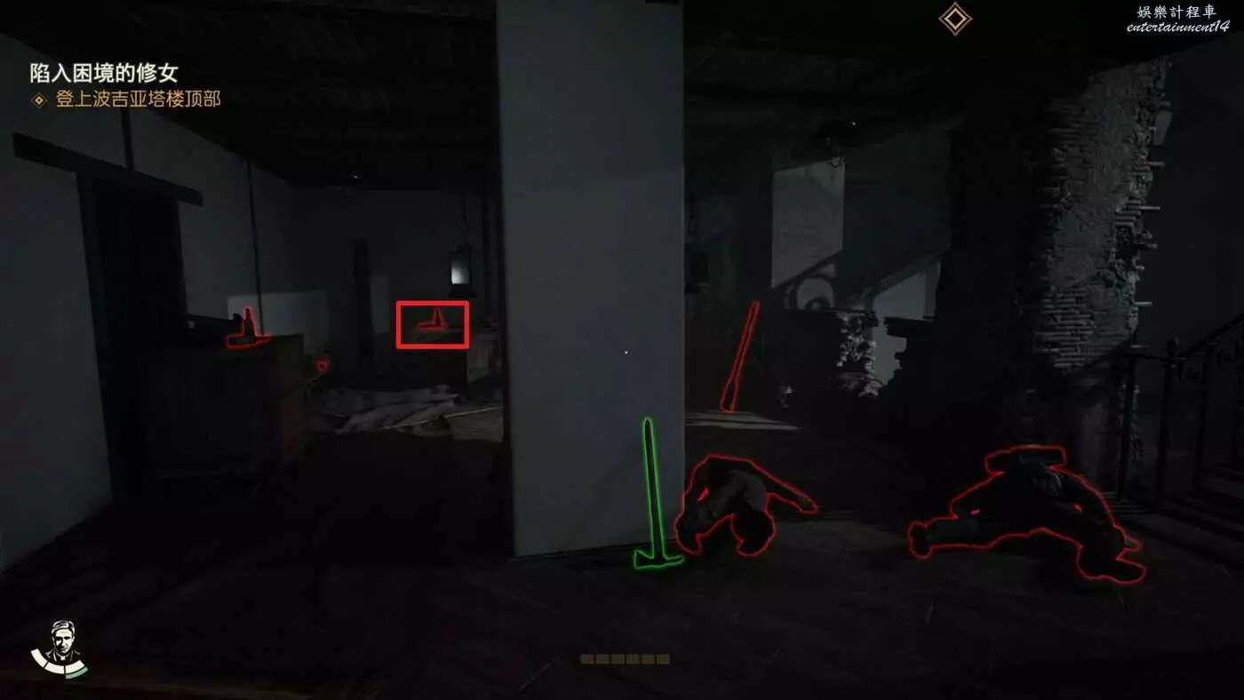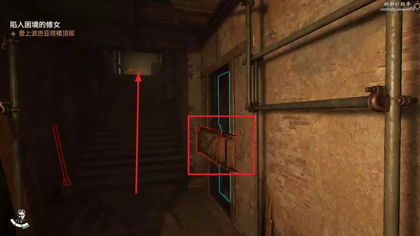 將審問的敵人幹掉,劇情中能獲得一把鑰匙,從吉娜的對話中得知還有一份筆記提示目前位於西斯廷禮拜堂處。