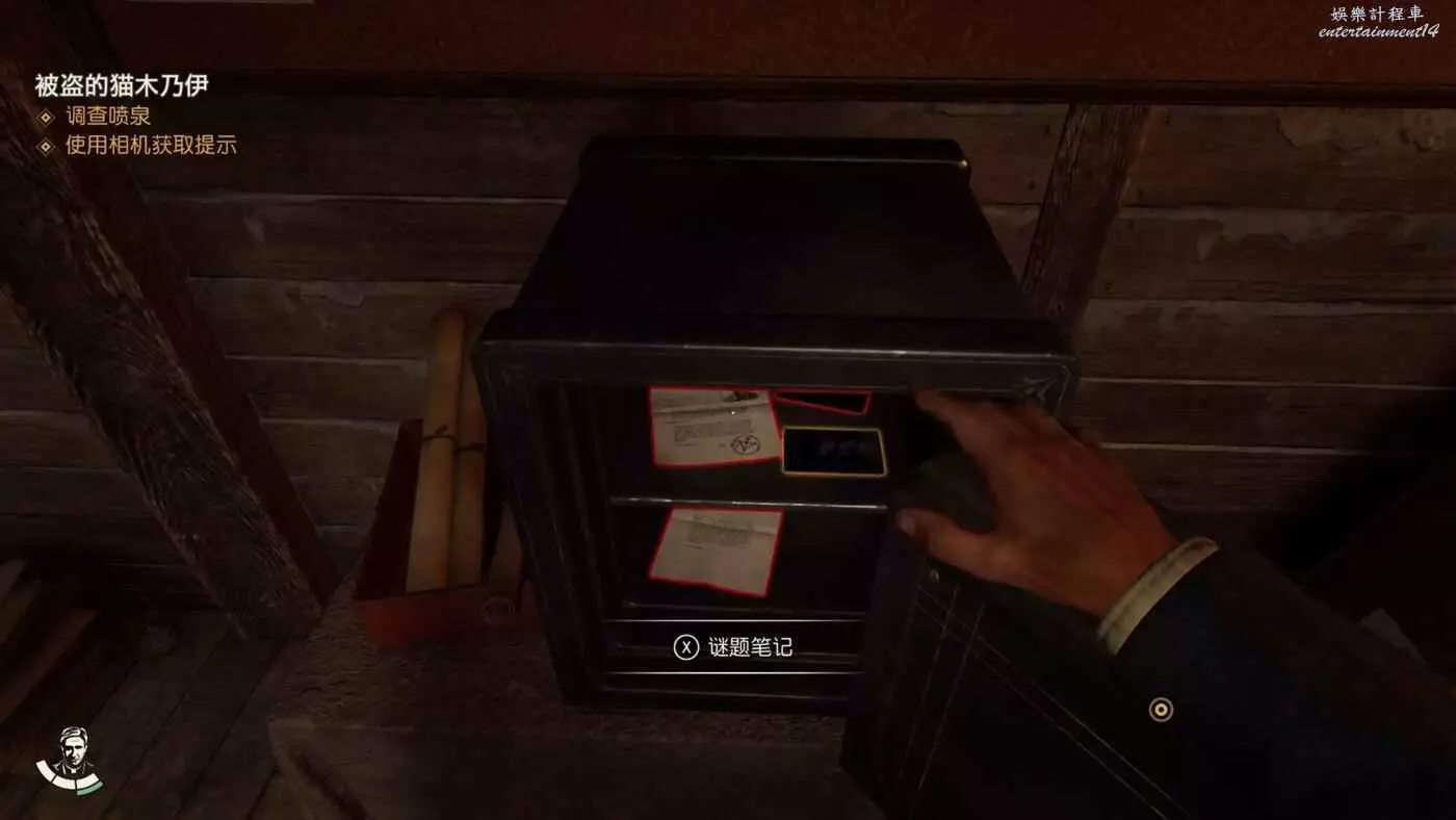 通過密碼【5873】打開保險櫃,裡面可以獲得筆記【錫瓦照片】、【小亨利報告】、【辦公室照片】、【老亨利報告】完成謎團【父與子】。