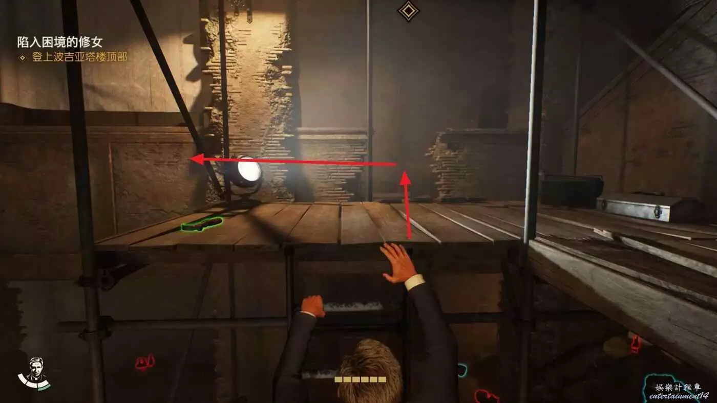 使用錘子等武器打碎左邊的牆,裡面可以拿到失落的歐洲文物【維納斯雕像】