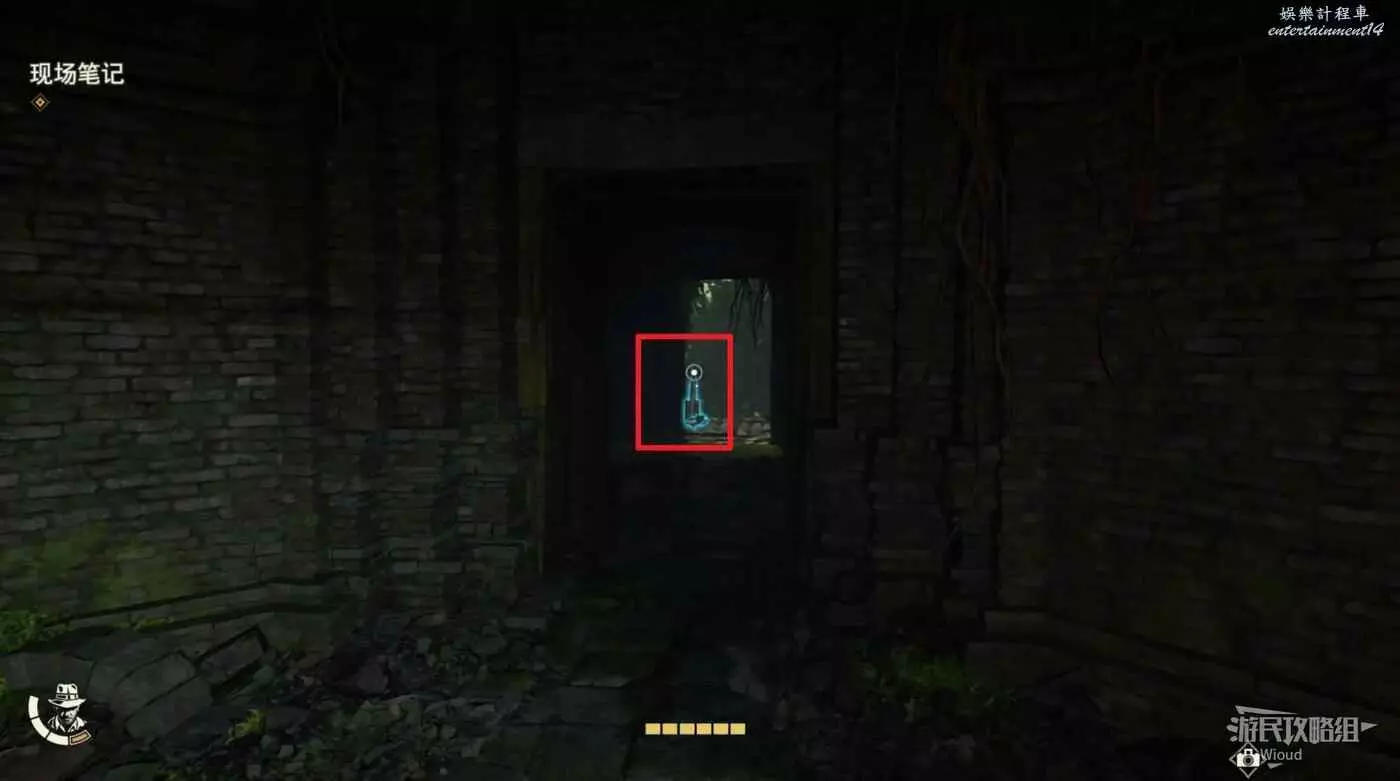 走到隧道盡頭探照燈的位置,先右拐,盡頭可以拿到一個冒險書籍,然後往左走到一個開闊區域。