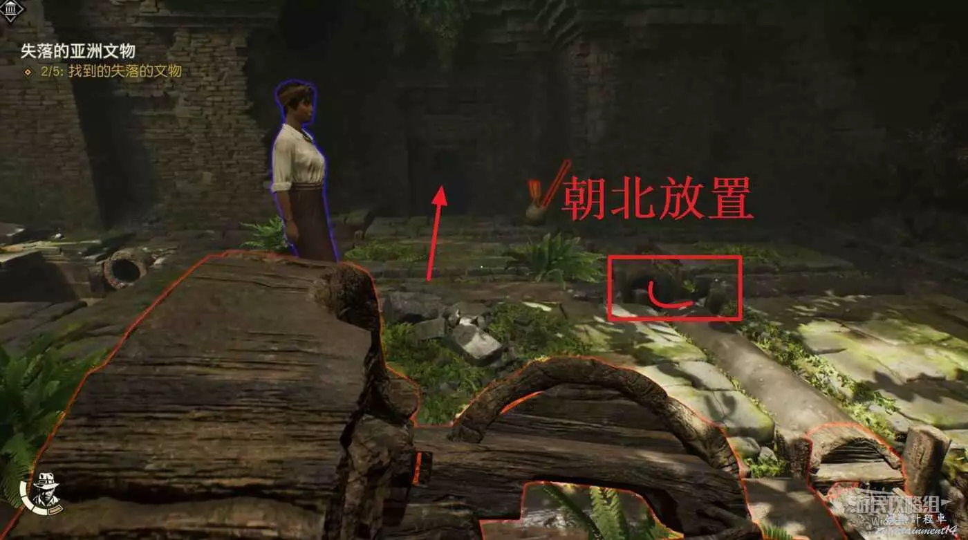 最後拿出來右邊房間的彎管道,放到下圖所示缺口,朝南放置,解開謎題高棉管道工程。