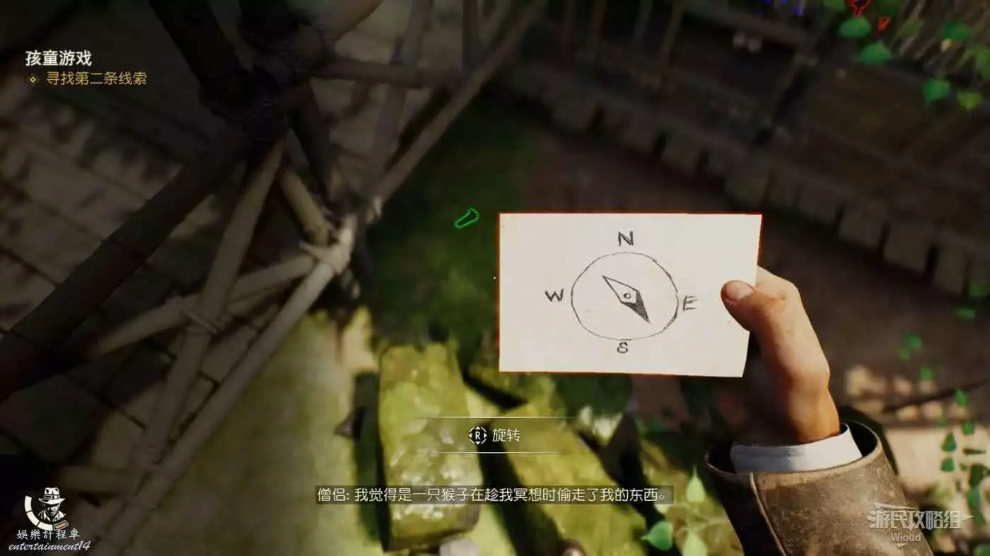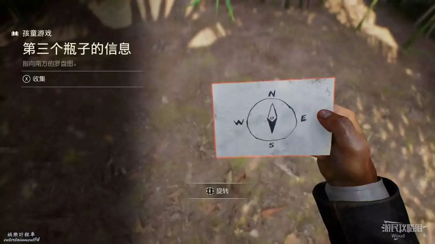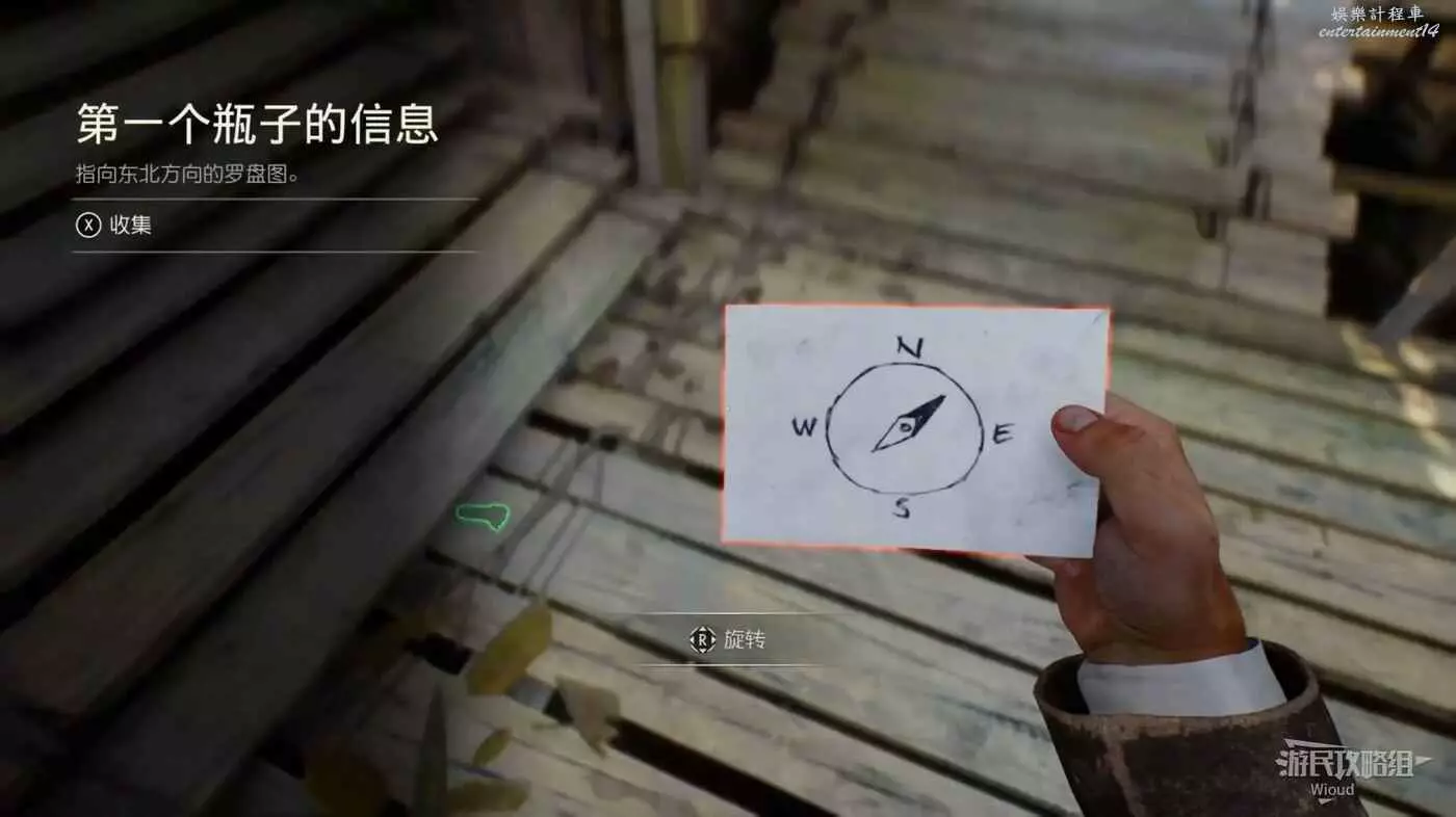 此處最下方樓梯口的位置,可以拿到一個瓶子,將瓶子扔到地面打碎可以撿到筆記【第一個瓶子的資訊】。