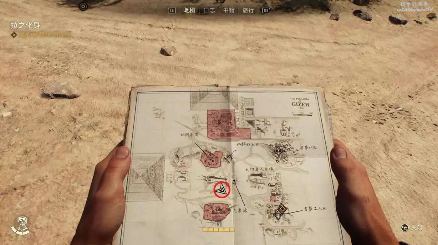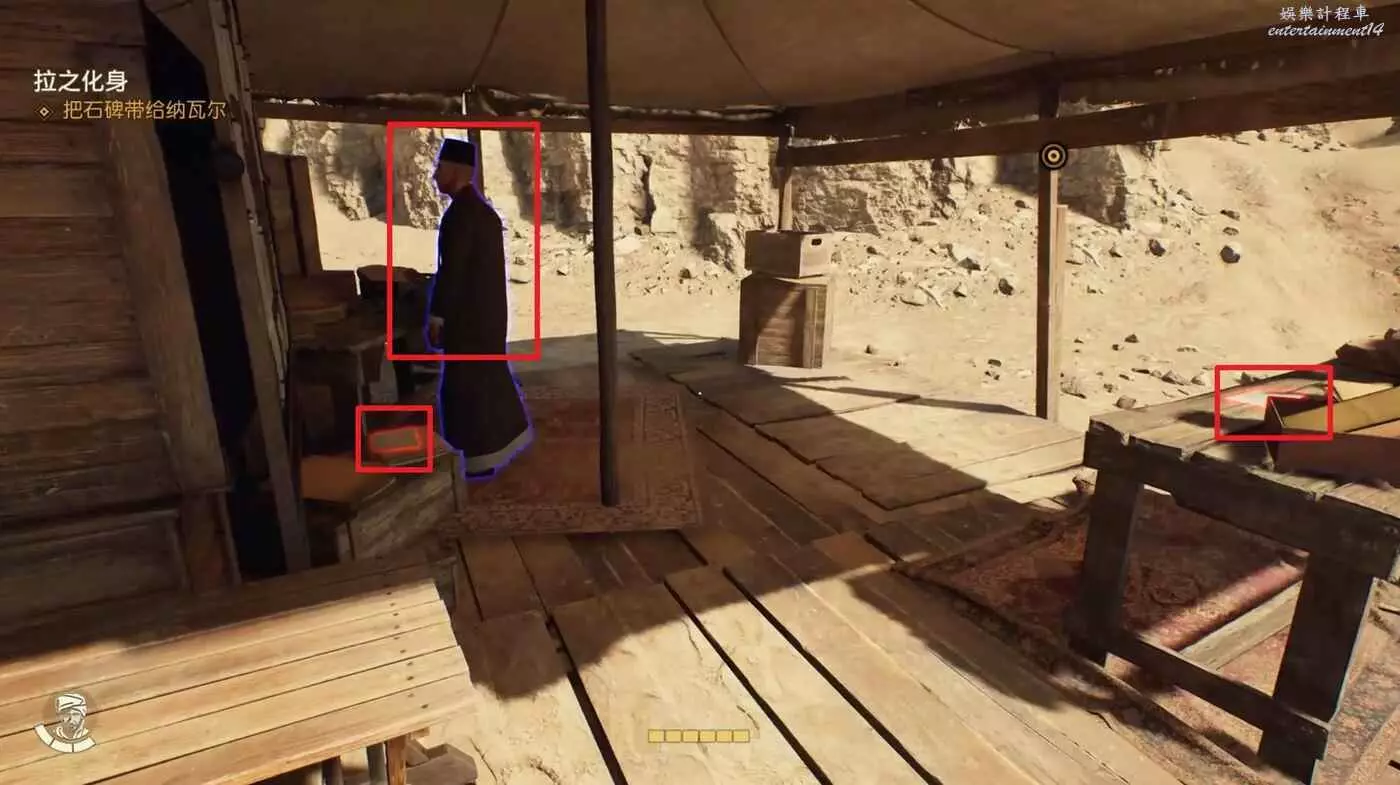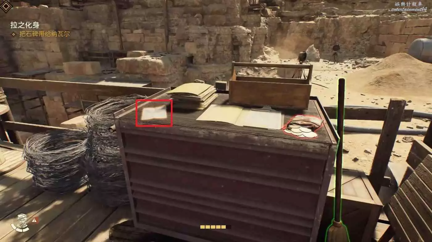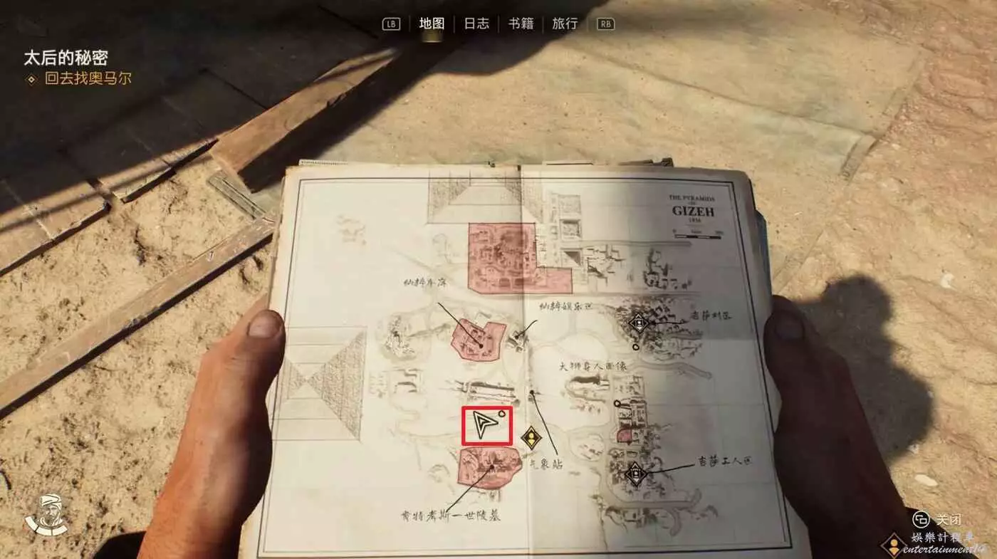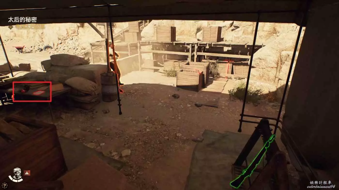 黑轎車旁邊的帳篷裡可以拿到筆記【克萊伯的來信】、【肯特考斯挖掘地圖】,與NPC對話接取實地考察太后的秘密。