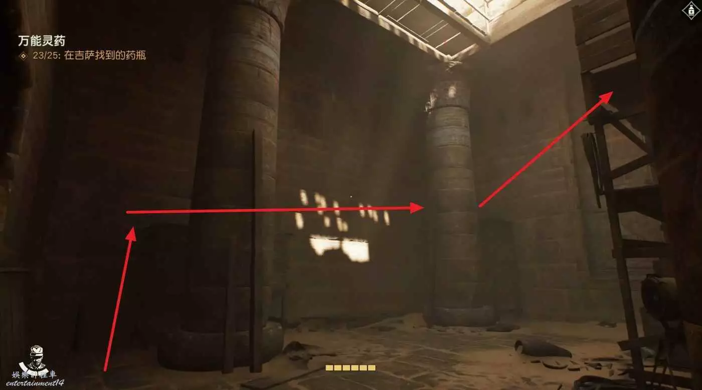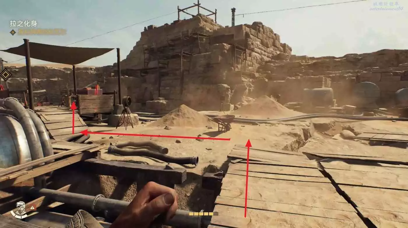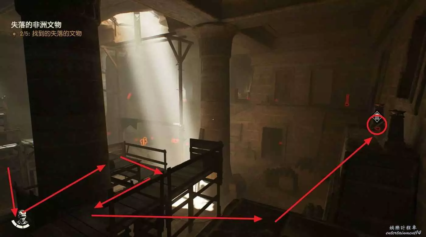 回到中間位置,按照下圖路線跳到右側的高台,可以拿到文物【世界方舟】。