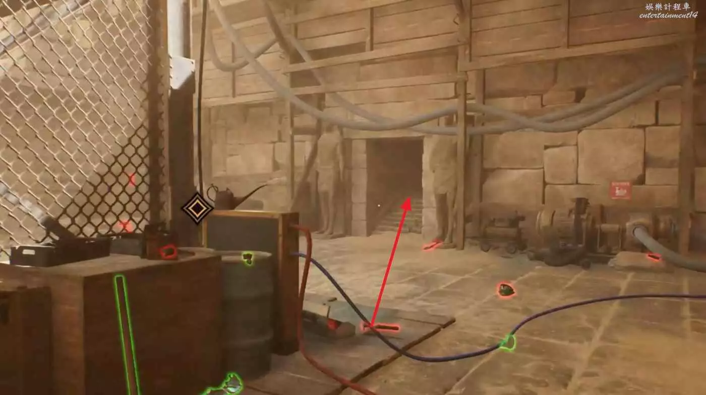 與深處的開關互動,然後對著對面的壁畫拍一張。