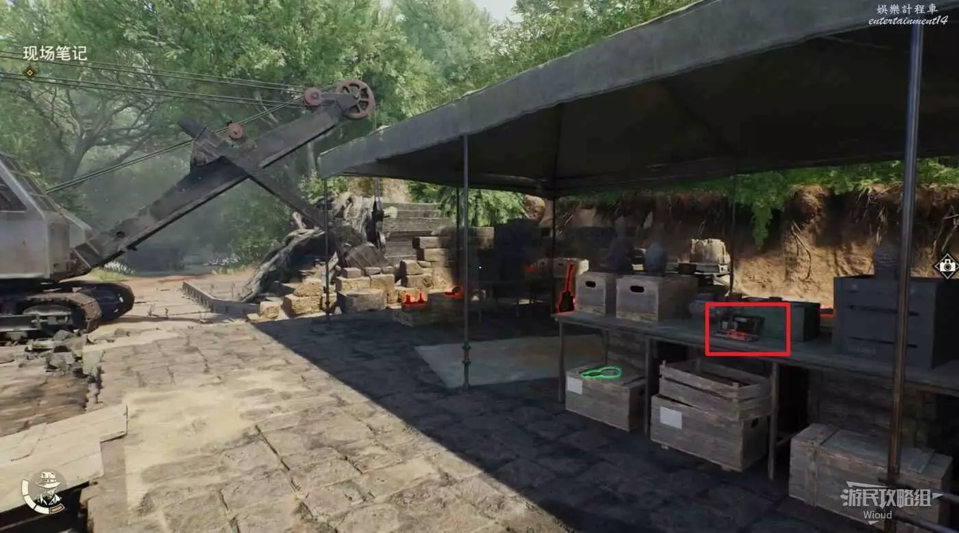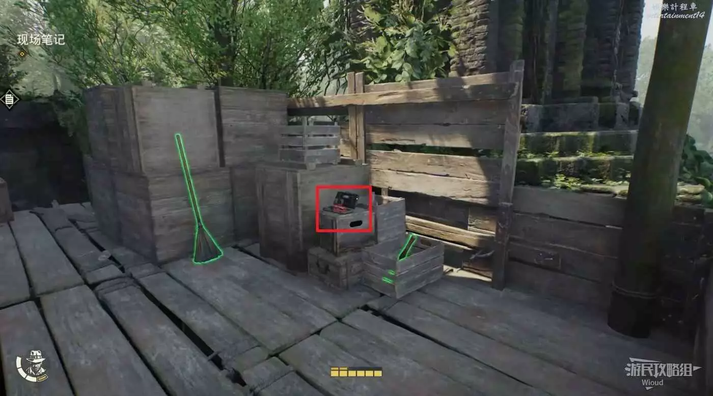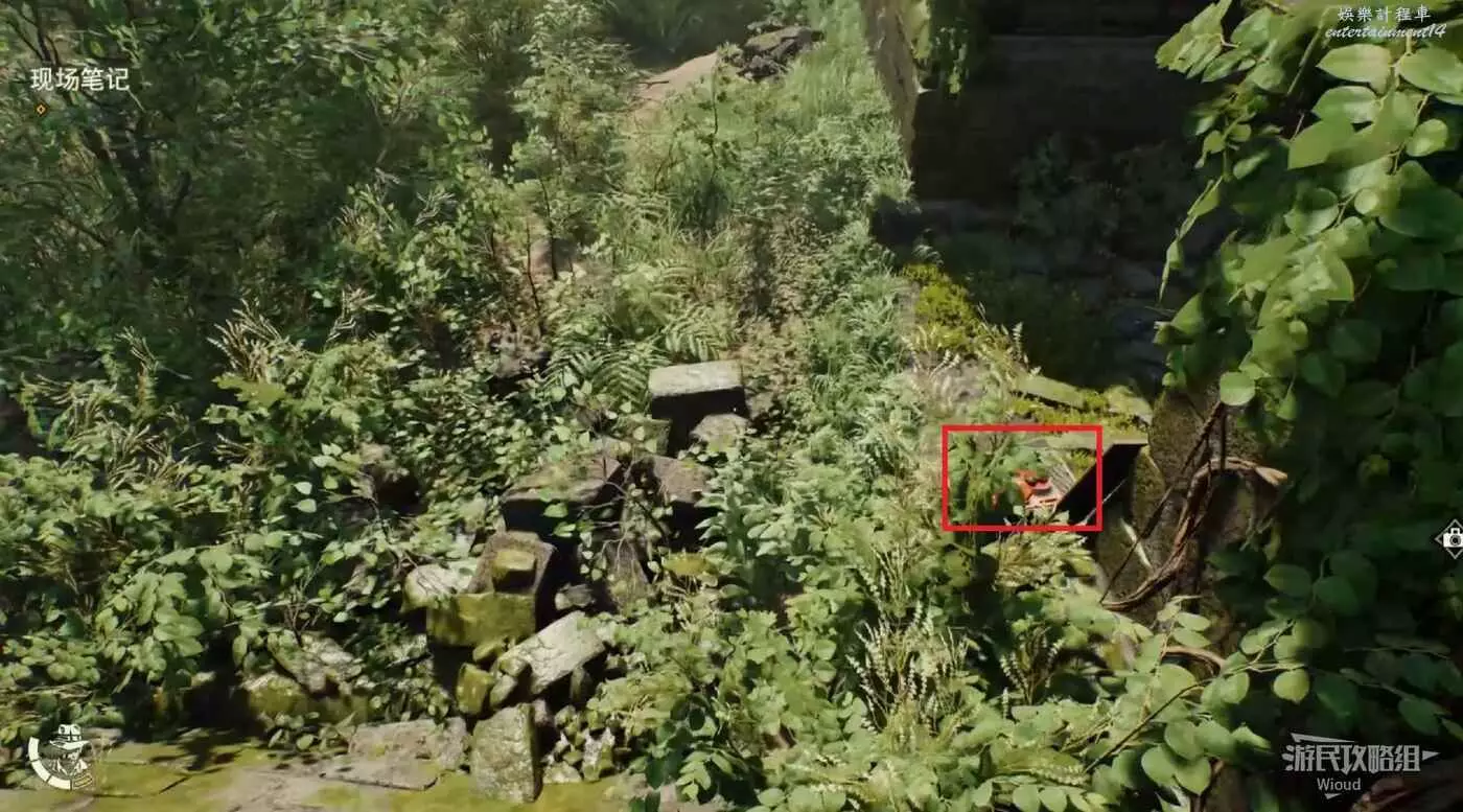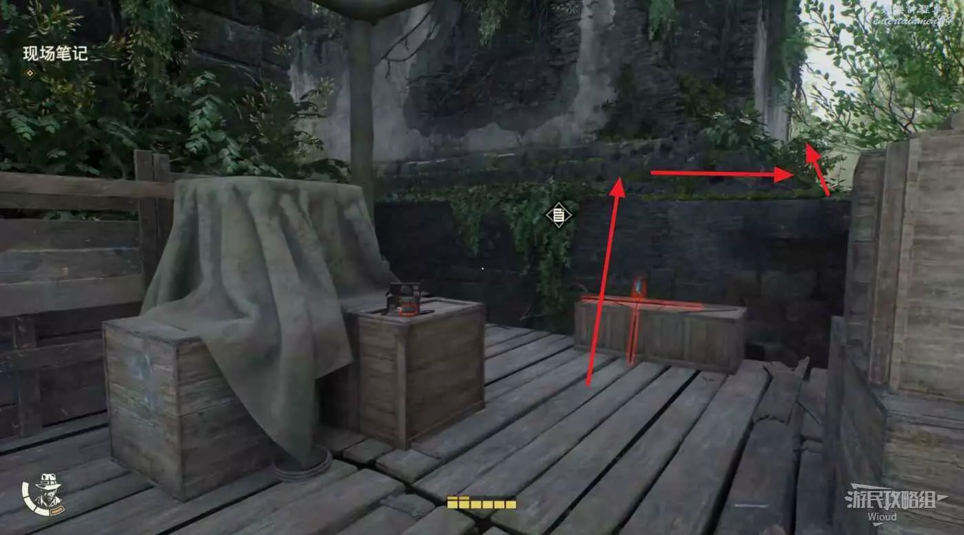 回到建築中層,走到正對建築的左邊走廊,箱子上可以拿到一個筆記,然後走到走廊盡頭跳下去。