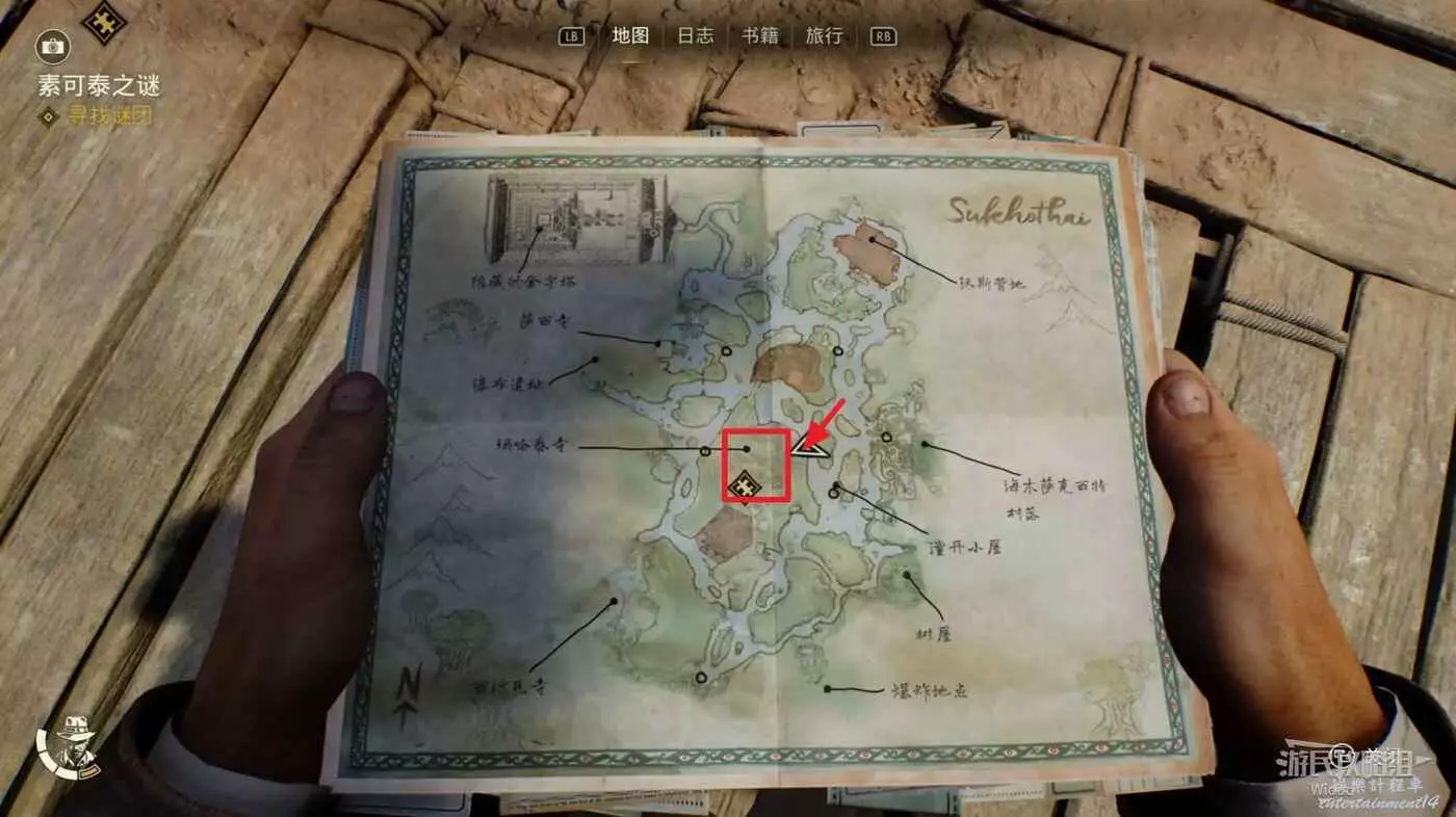 入口左邊的桌子上可以拿到筆記【巴托洛梅奧的挑戰】、【瑪哈泰寺報告】,使用密碼【4134】打開寶箱可以獲得冒險書籍【街頭鬥士3】。