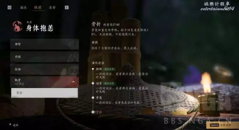 8.人物突然不能奔跑,只能走路,我最開始還以為是按到什麼走跑切換鍵了,後來才發現,螢幕左上角小地圖附近有個紅色小人圖示,也就是生病的標誌。點進去就能看到如下頁面。