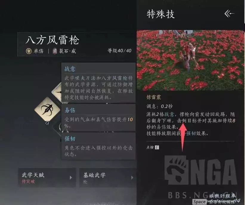 4.值得注意的是這個’八方風雷槍’它可以擊倒目標,boss也吃這個擊倒!!相當於強控制!而且只吃資源,cd極短。