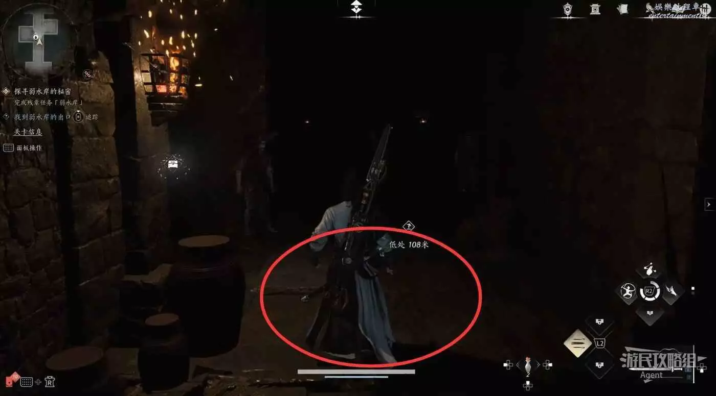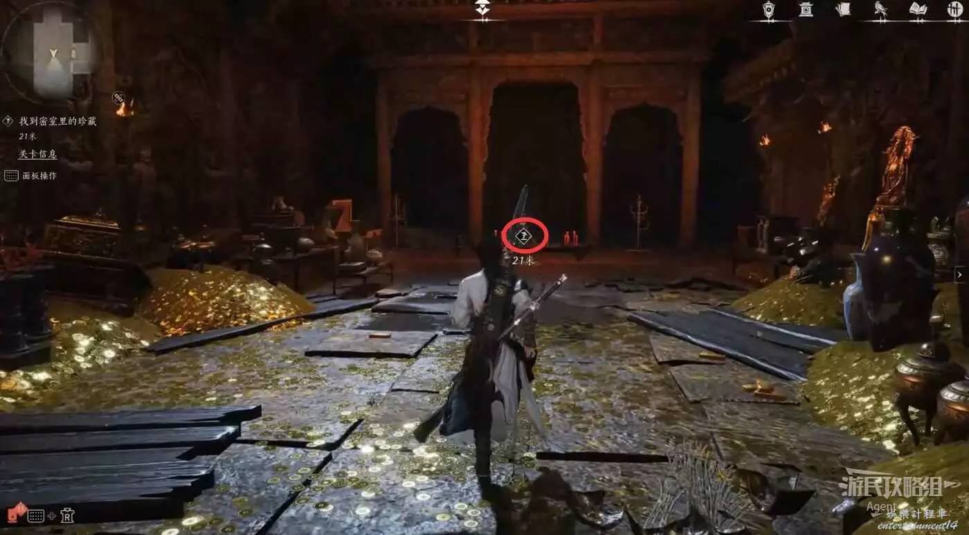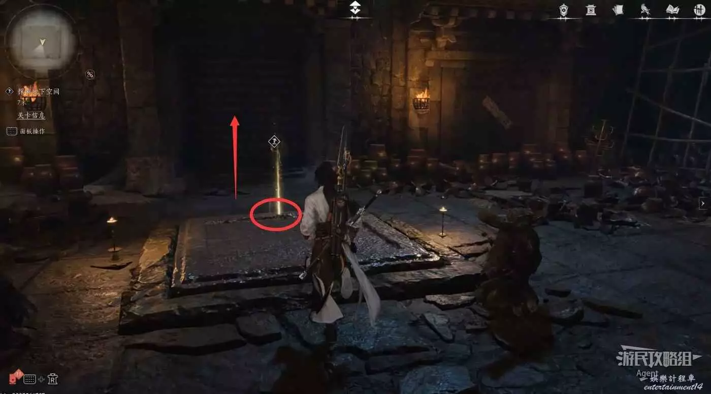 往裡走到頭有個洞,跳下洞來到下層,踩機關後才能開門。