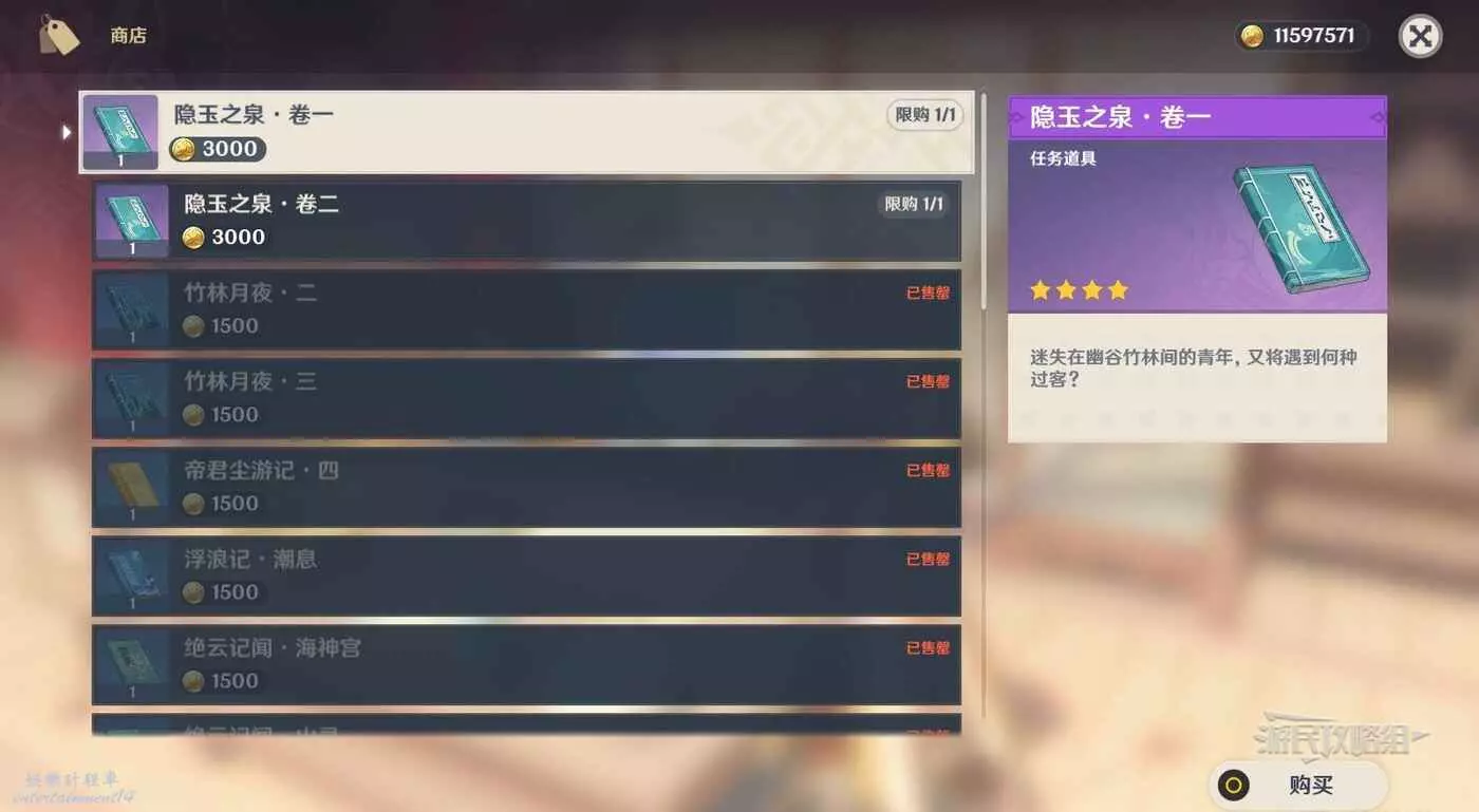 與萬文集舍老闆紀芳對話,即可購買隱玉之泉卷1和卷2,完成全套收集成就。