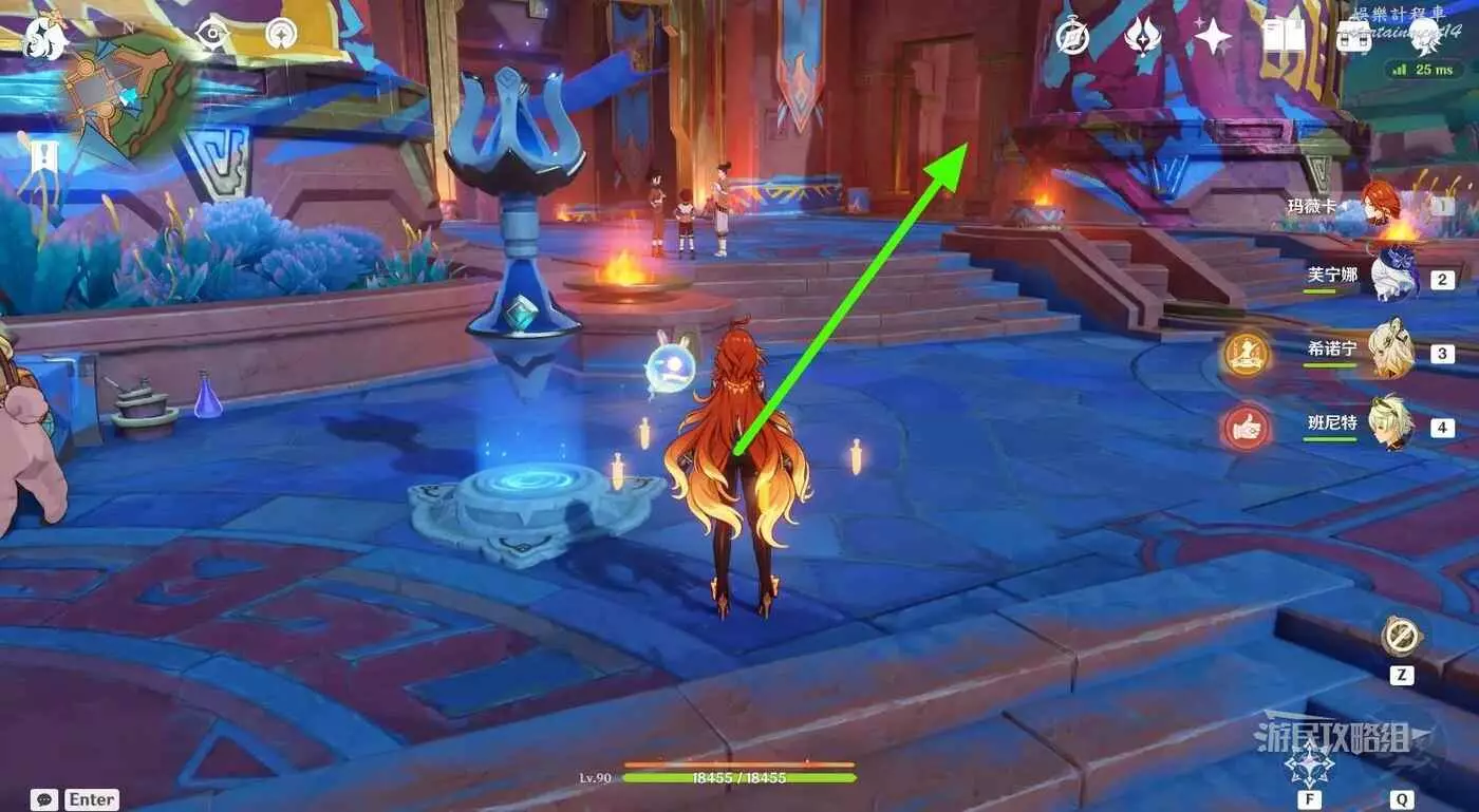 站在傳送錨點所在位置,面相小地圖西南邊,進入正門右側的通道。