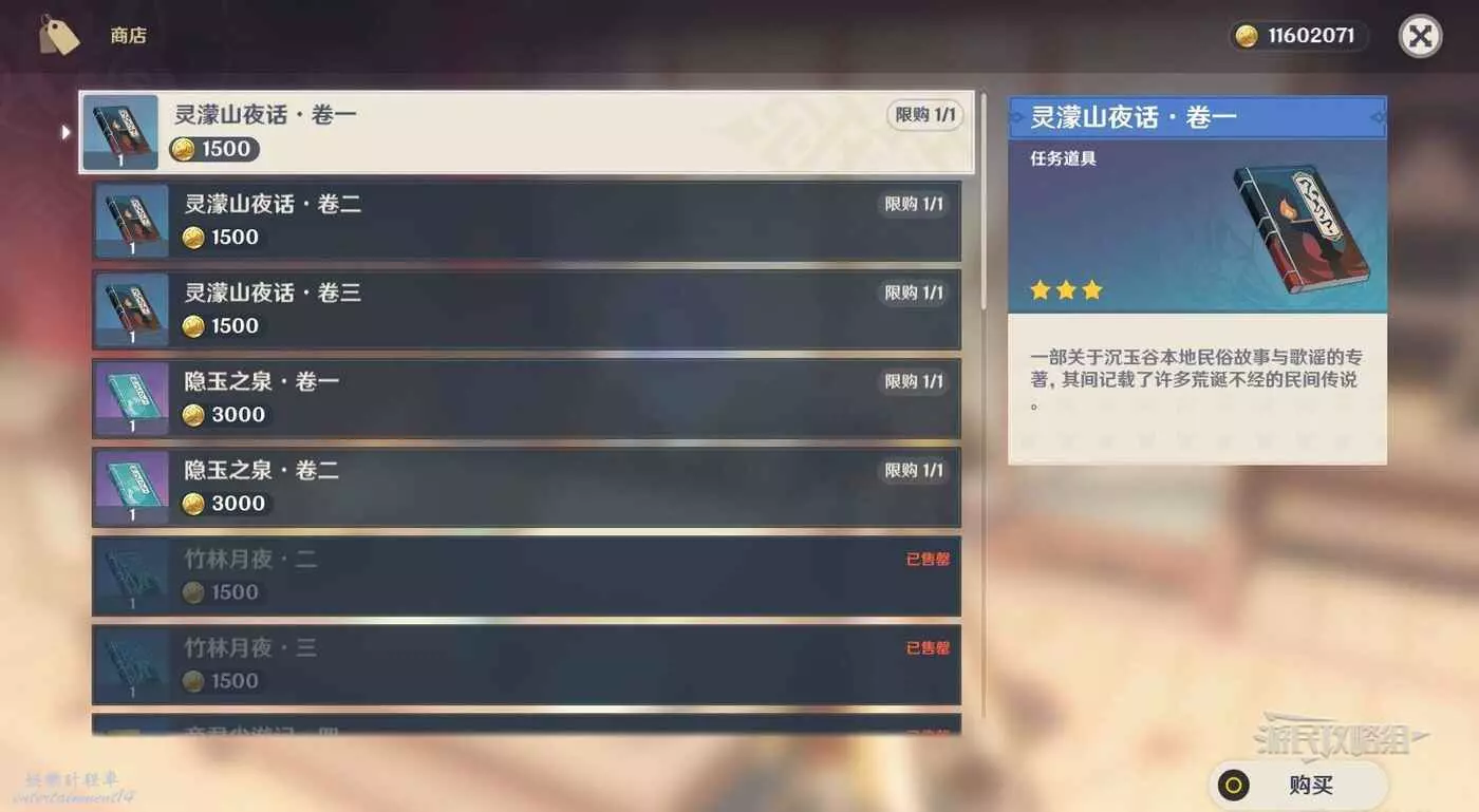 與萬文集舍老闆紀芳對話,即可購買靈濛山夜話的卷1-卷3,完成全套收集成就。