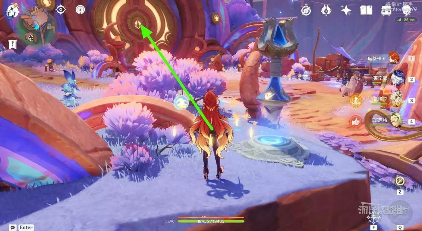站在傳送錨點所在位置,往小地圖東北方向看,進入圓形大門。