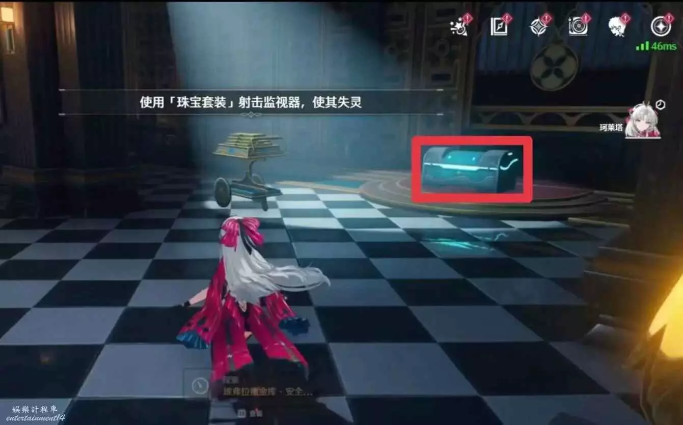 用輔助機(珠寶套裝)射擊凍結監視器後即可前往打開寶箱!