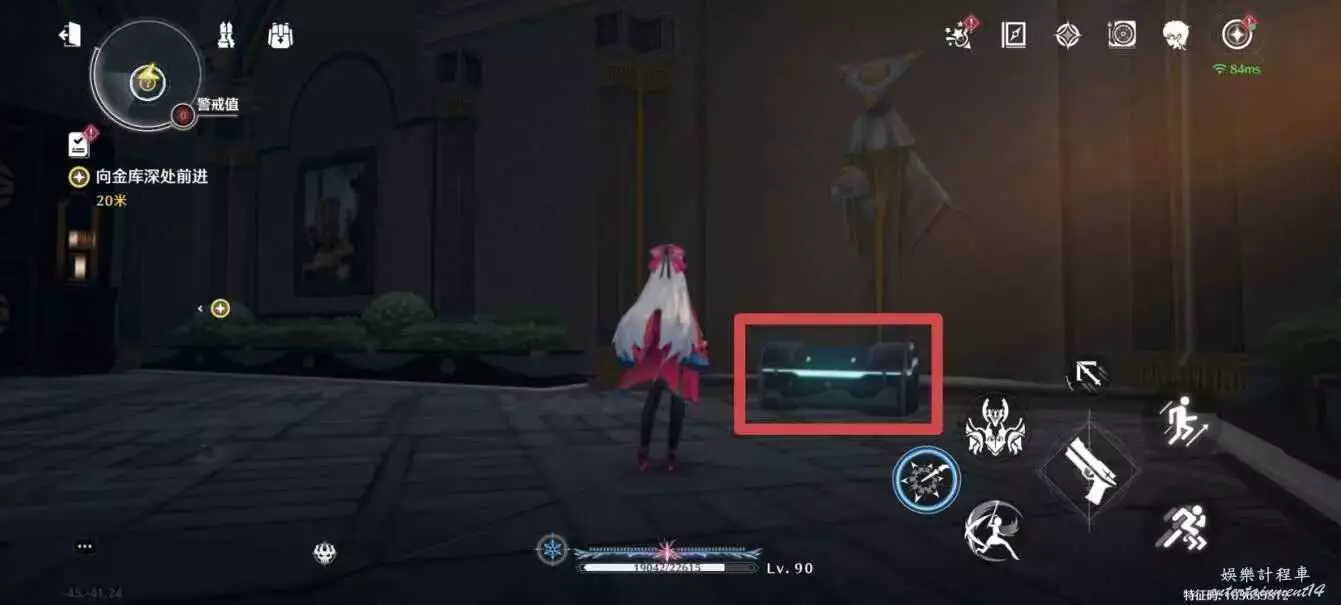 去開寶箱前先用輔助機(珠寶套裝)射擊凍結監視器,使其失靈以避免提高警戒值!