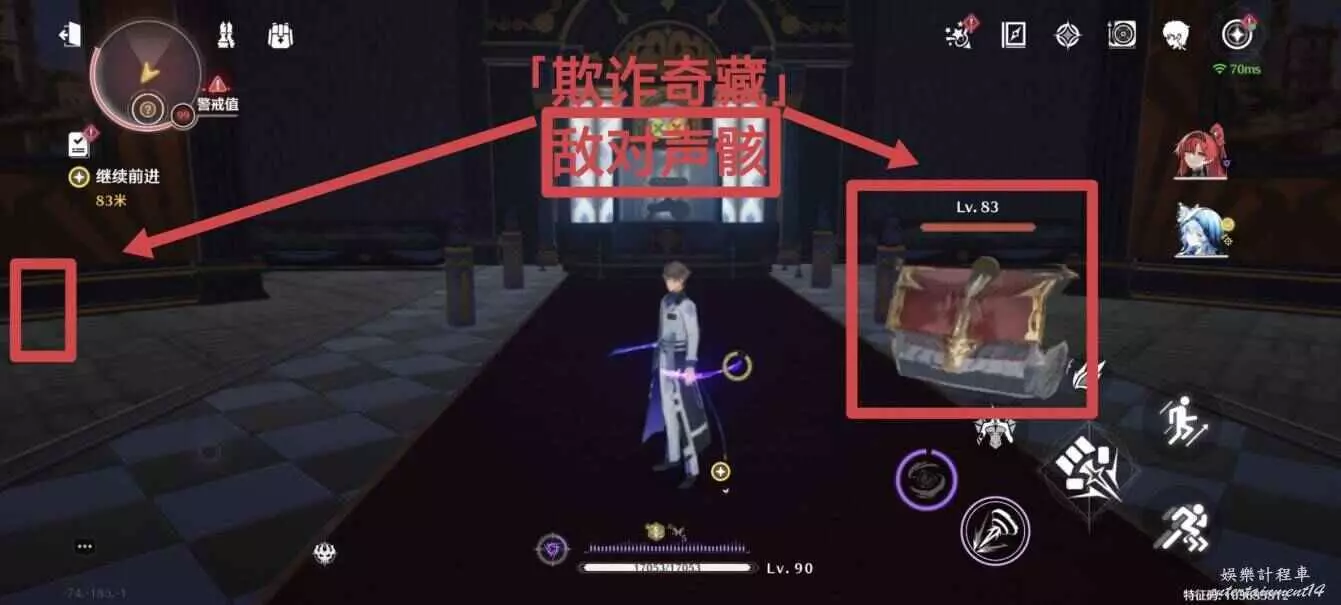 右邊是「欺詐奇藏」敵對聲骸,打完沒有任何獎勵,故推薦直接走左邊跟著劇情指引就行!
