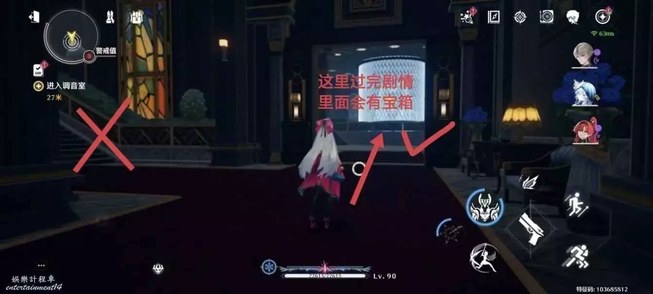 跟隨劇情指引前往第一個房間,用輔助機(珠寶套裝)射擊凍結左右兩邊監視器後可選開啟寶箱!