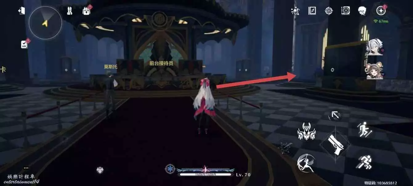 進來後照紅箭頭所指方嚮往右(小地圖東北方向)走!
