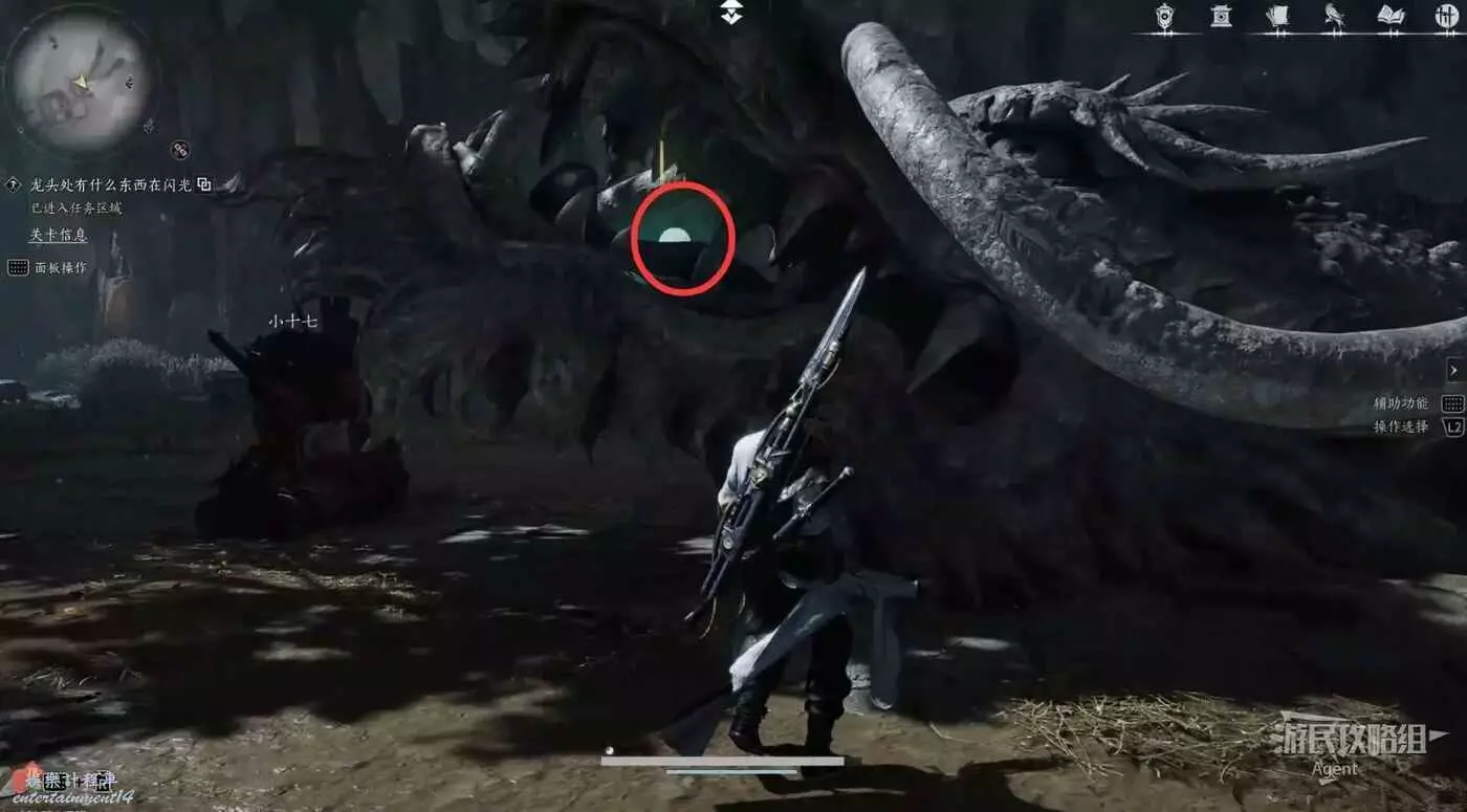 搜刮書架附近,和老僕對話,他要你到下面的隱龍淵告訴小十七“北去的大龍不會回來了”,還告訴你龍首嘴裡有寶貝。