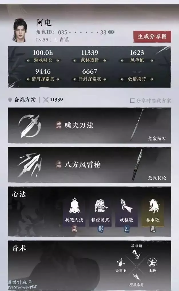 武器選陌刀+槍,部分可以選奶扇。心法就選圖上的,怕死可以把移經易武換困獸心經,奇術帶啥都行,主要靠陌刀輸出。