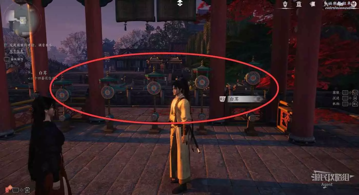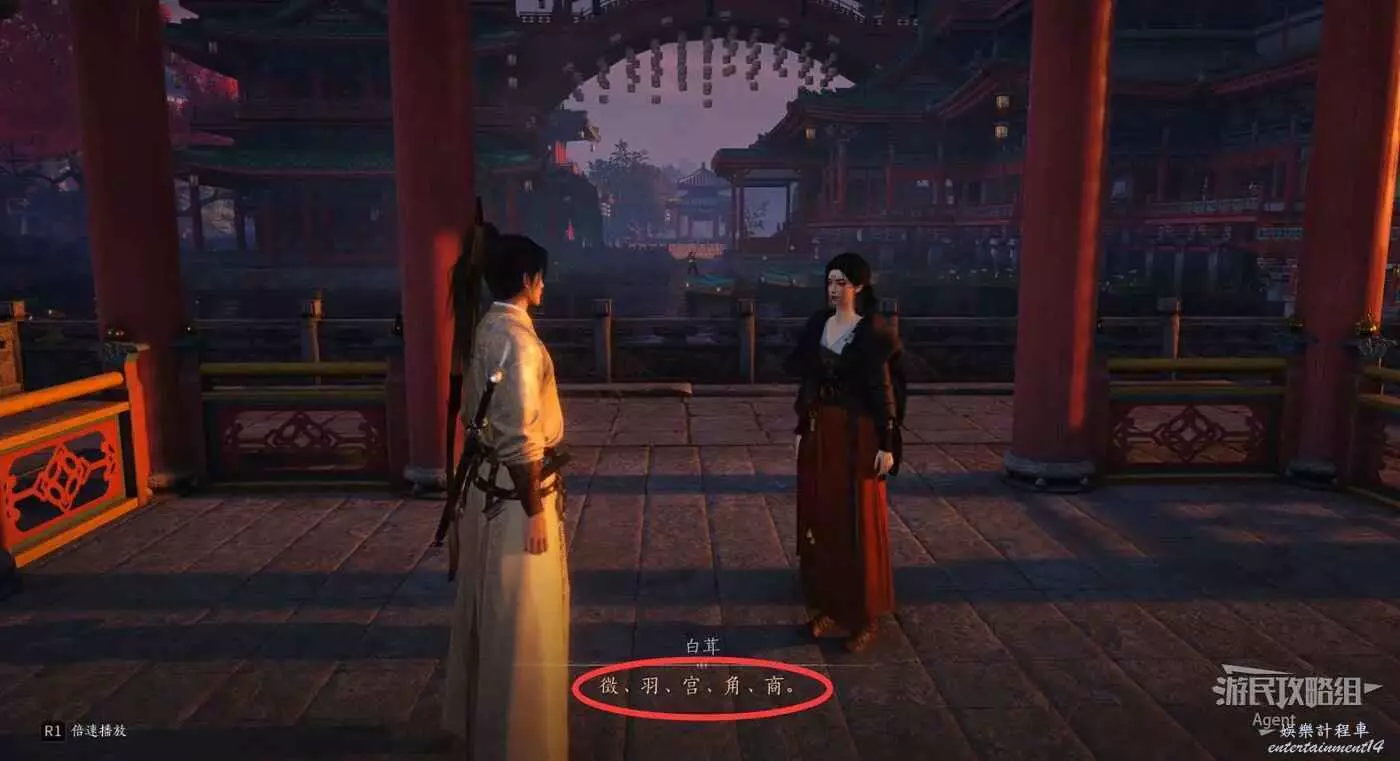 冒充樂師混進去,根據白茸姑娘哼唱的古代五聲音調,去敲對應的五個鼓。