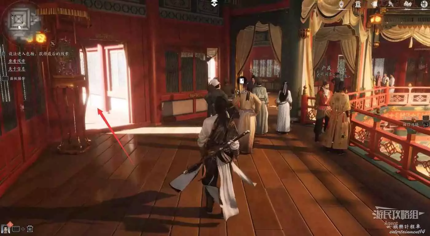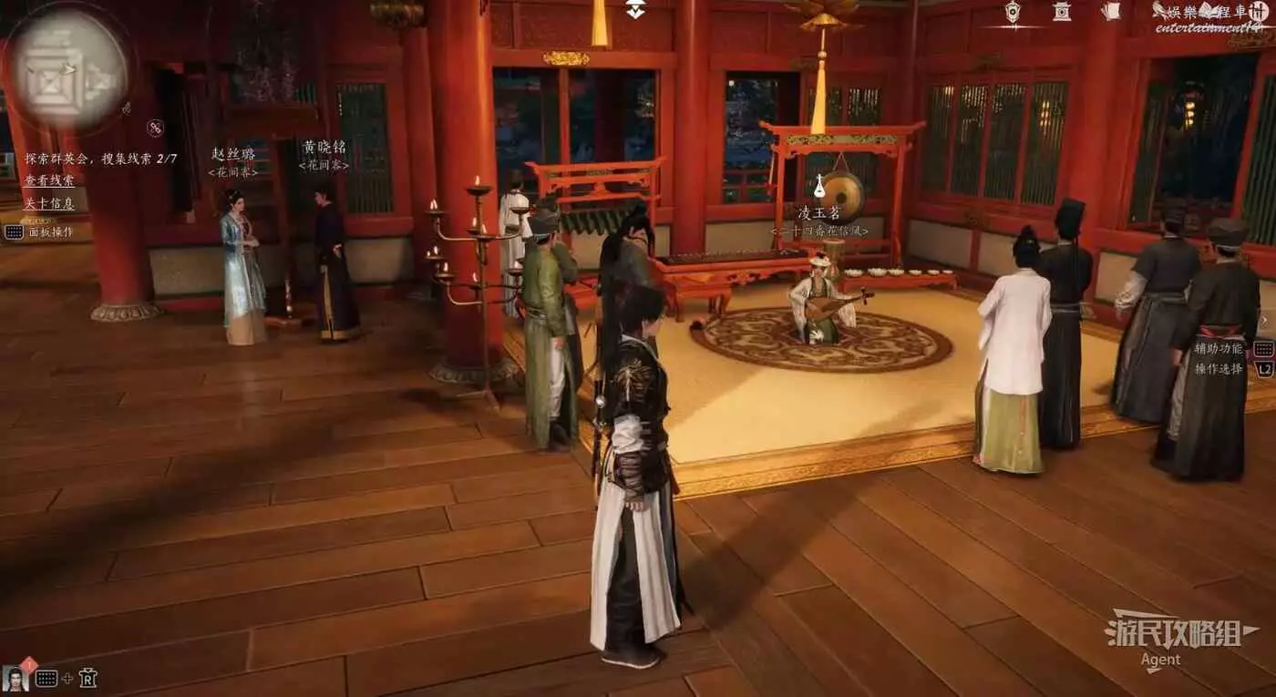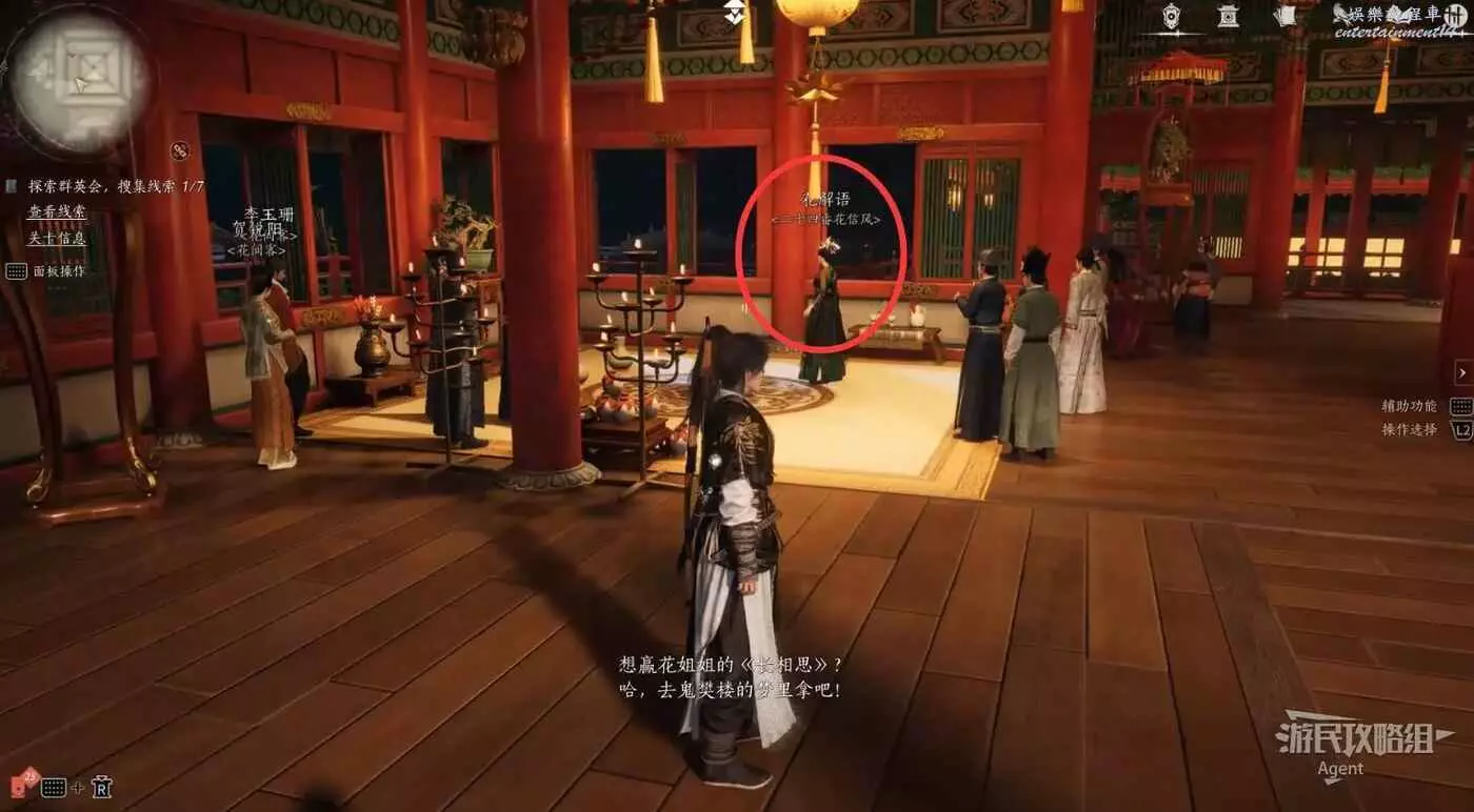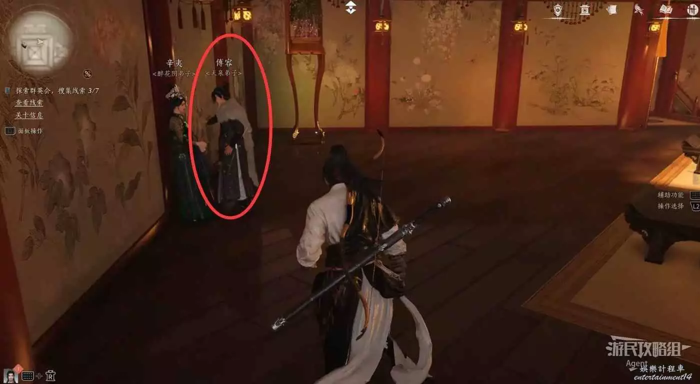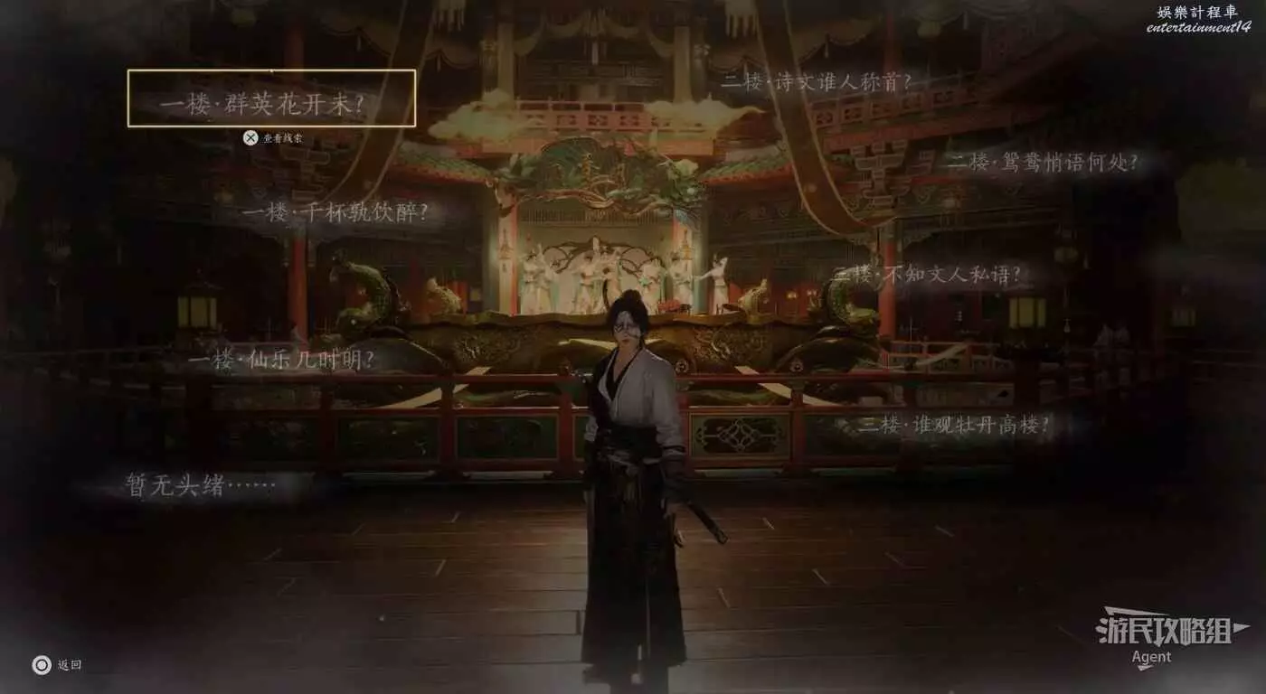 進入樊樓後,查看線索,得知有七處需要調查。除了這些,建議樓裡所有人的對話都看看,很有意思。