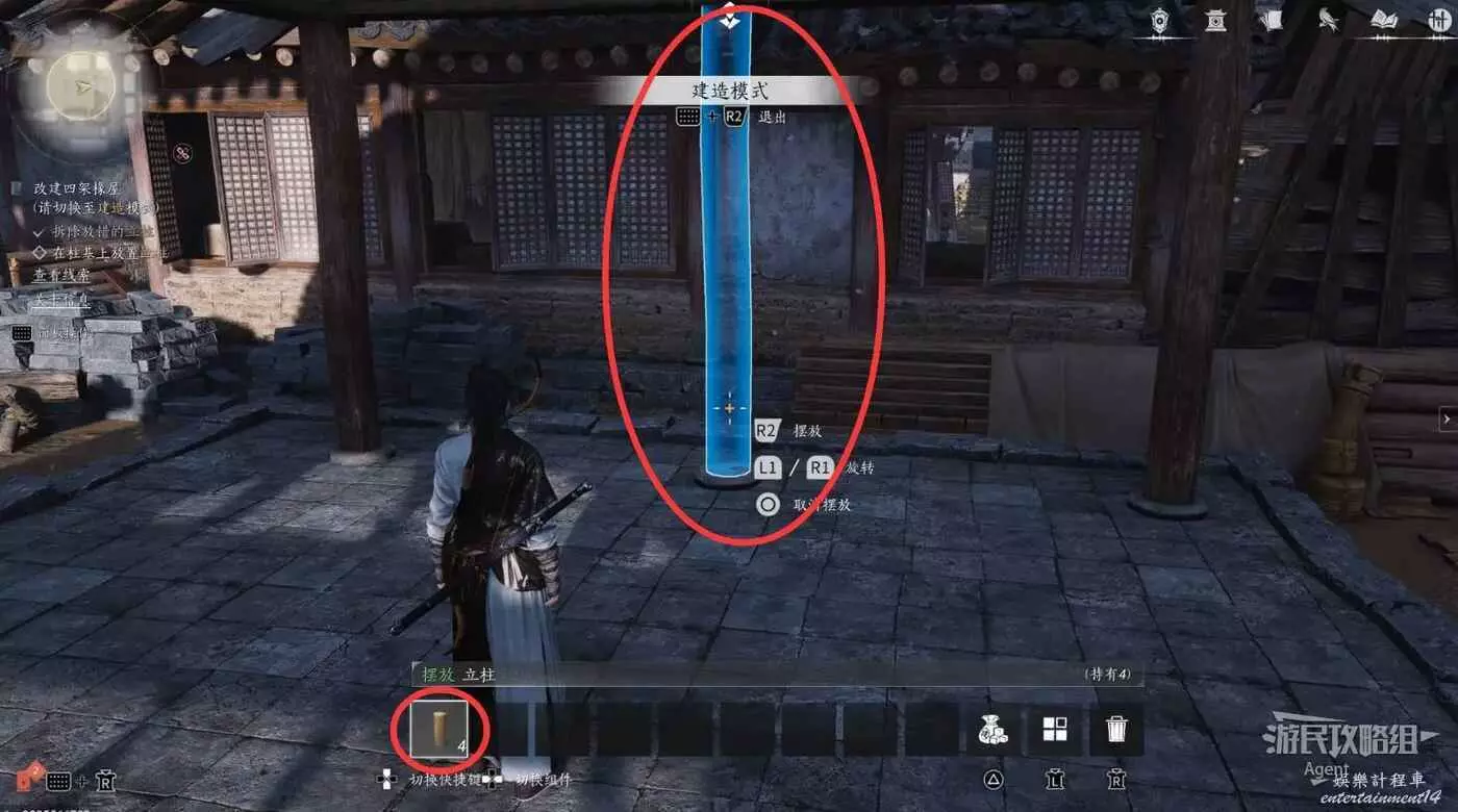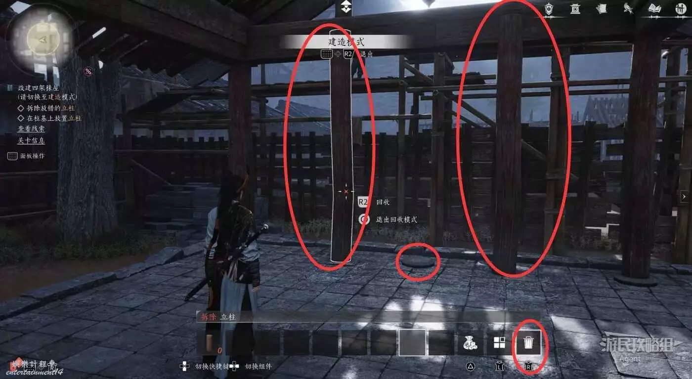 把多出來的柱子回收,然後在地上的小圓盤處安放柱子。