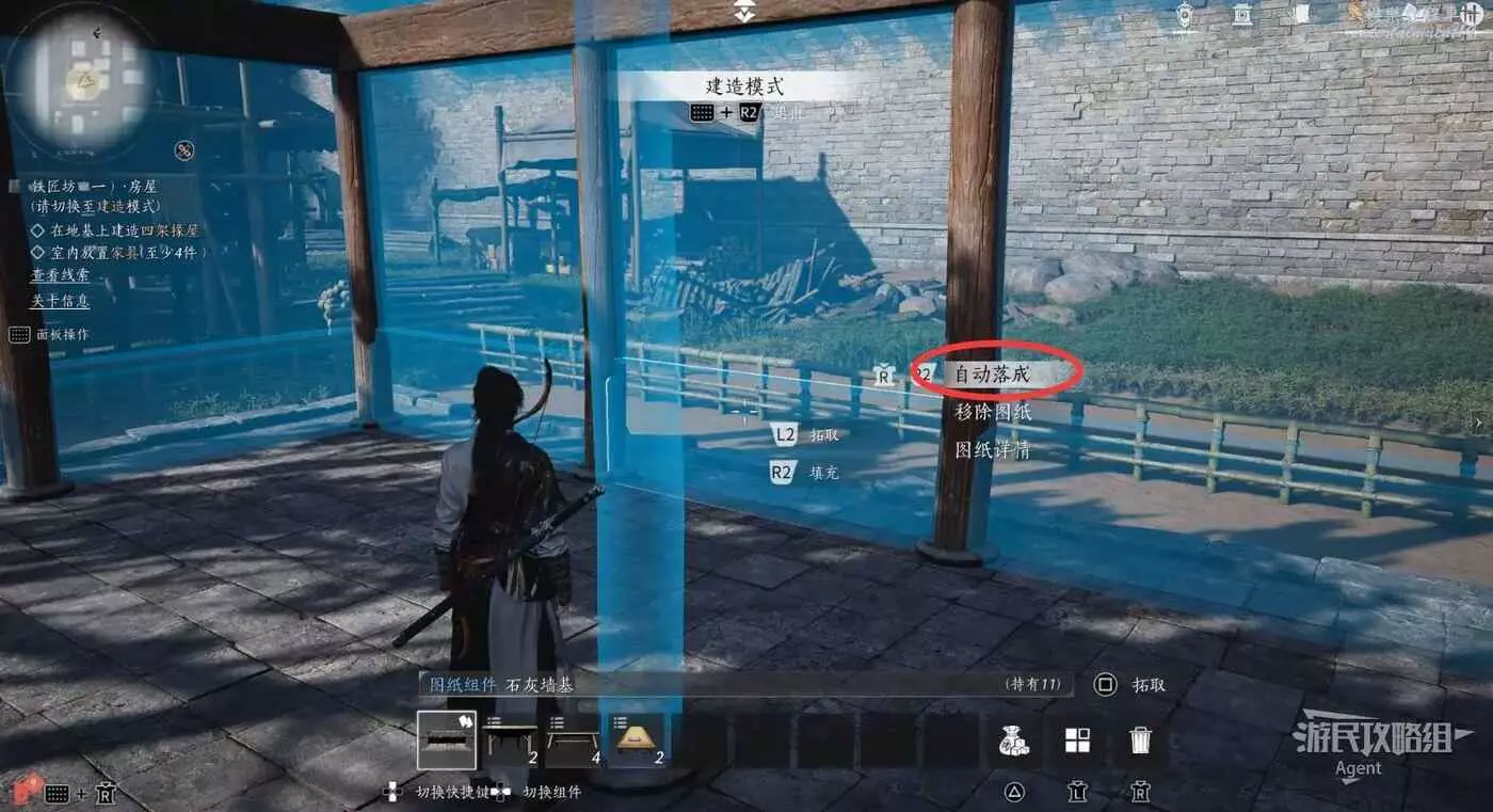 然後再找黎順蓋房子,側面放兩塊石牆。