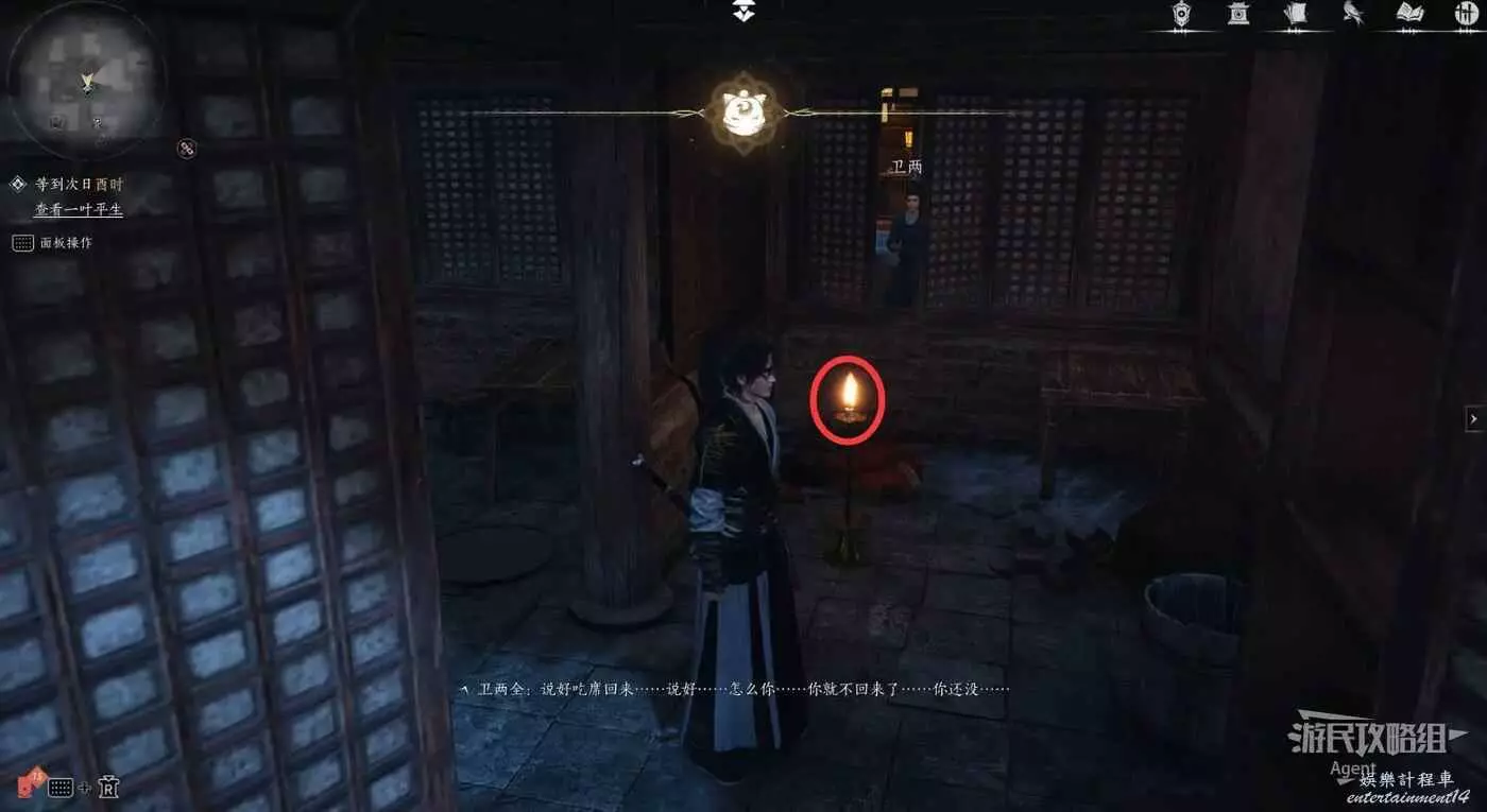 衛兩全在對著空屋子說話,從房後面的窗戶進去,看床邊的日記,然後時間調到夜裡子時,點燃蠟燭。