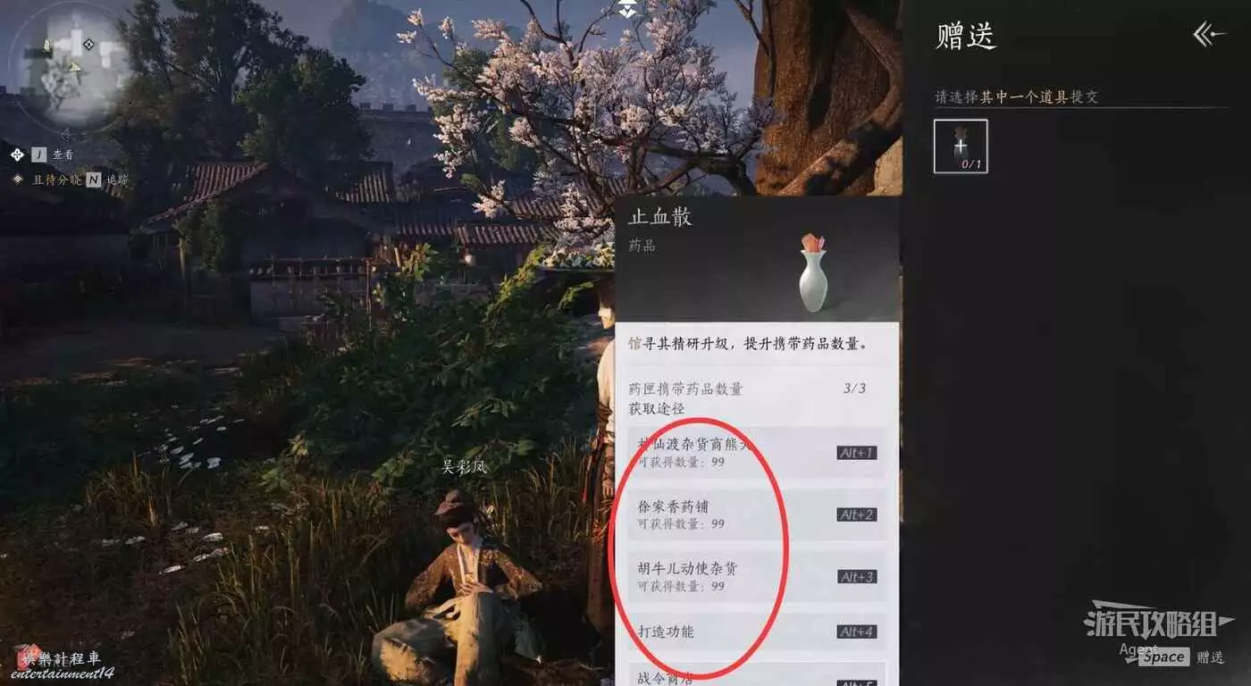 給吳彩鳳止血散,如果藥瓶用完了,可以查看獲得途徑,比如戰令商店就能直接買“江湖藥品救援箱”。