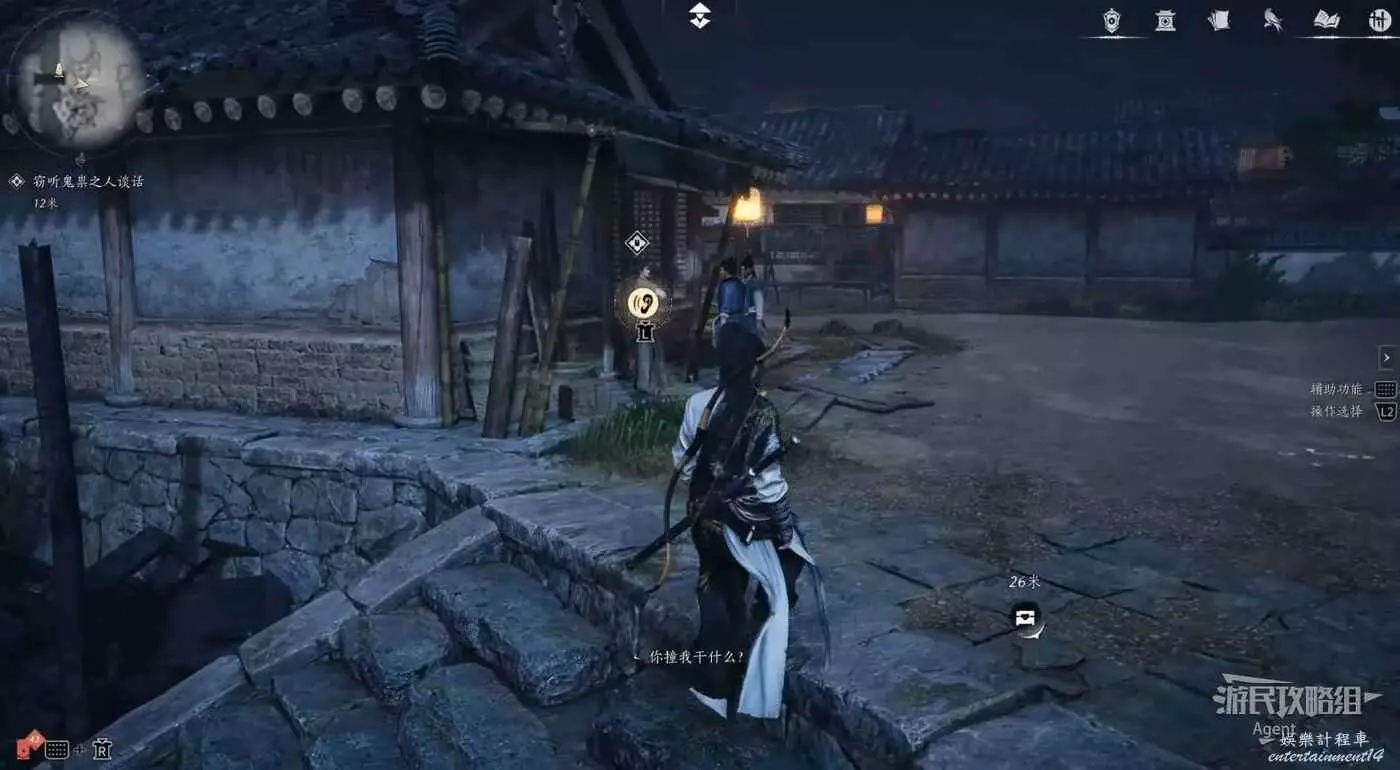 偷聽鬼祟之人對話,然後上去搭話。